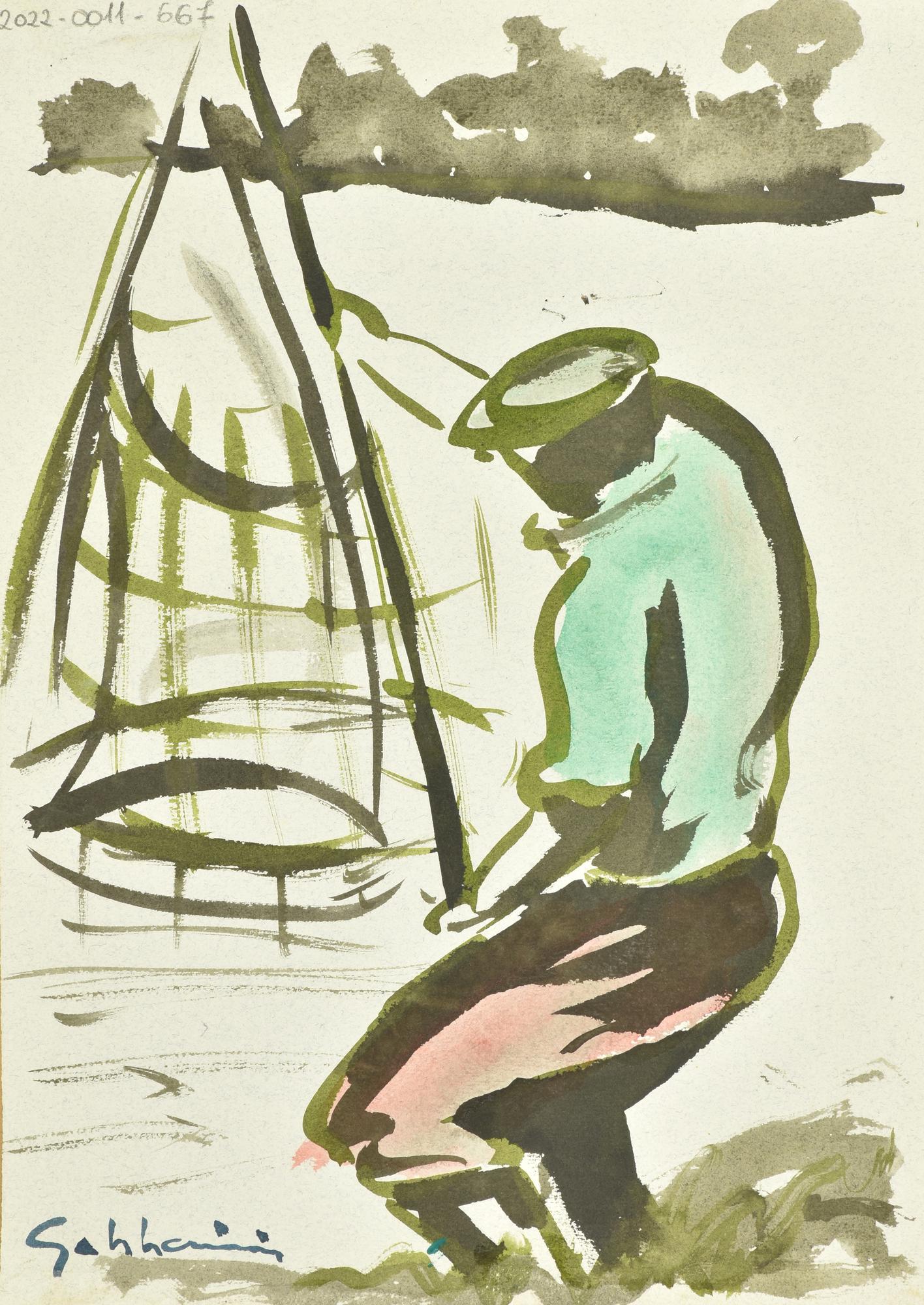 Gabbanini LA LAVANDAIA tecnica mista su carta Fabriano, cm 33x23 firma sul...
