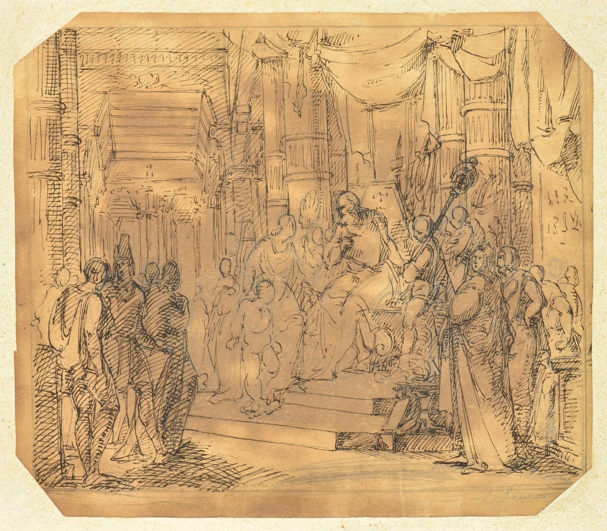 E. Leuri L'UDIENZA tecnica mista su carta, cm 19x22 firma sul retro:...