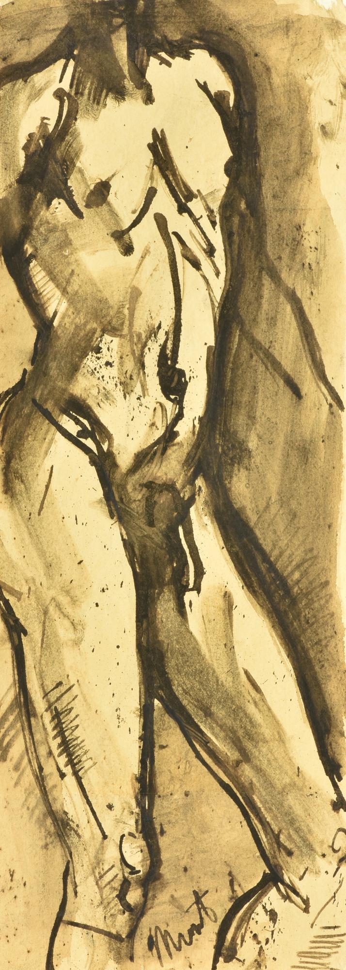Monti NUDO MASCHILE china acquarellata su carta, cm 34x12 firma sul retro:...