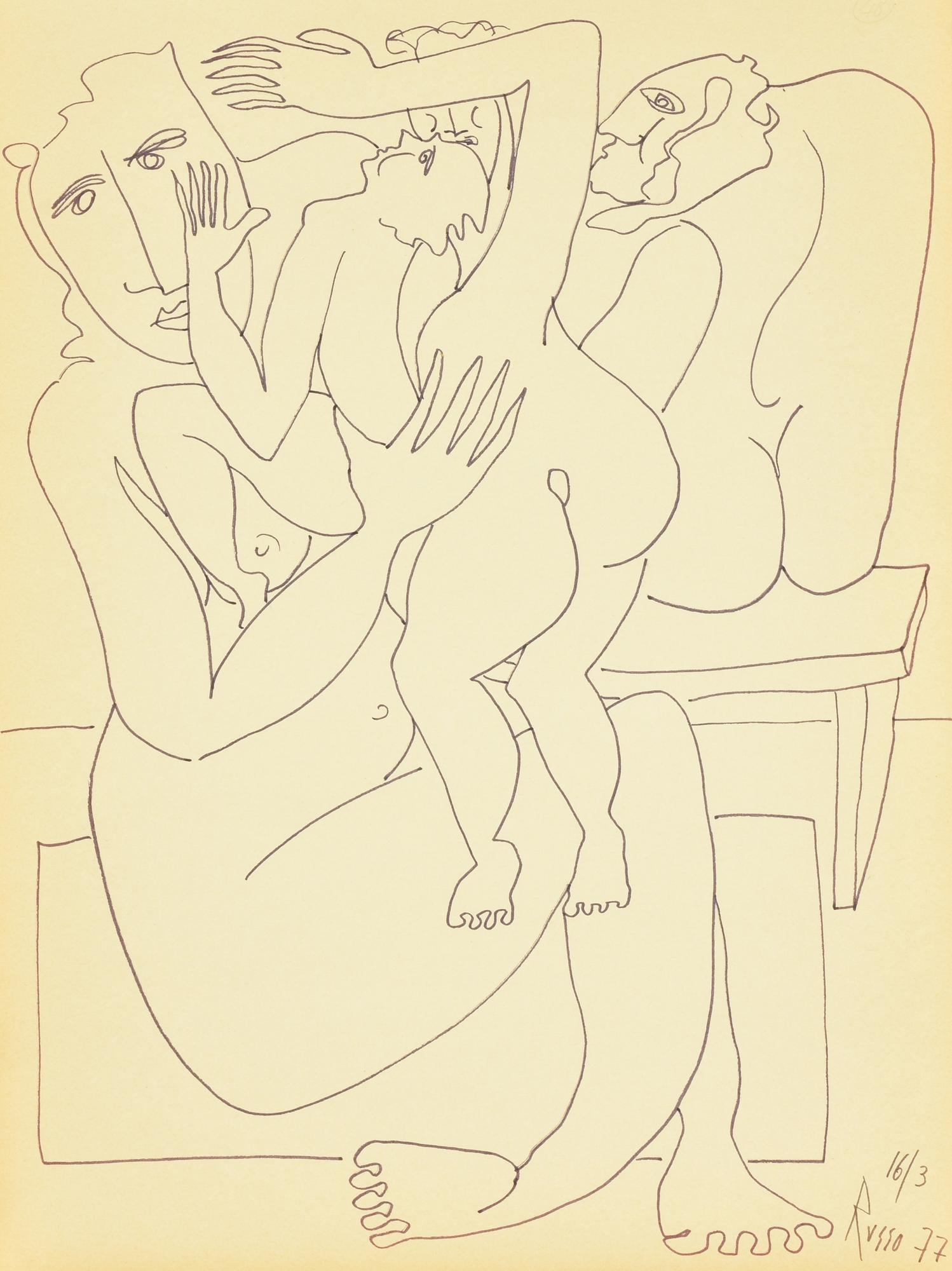 Russo DONNA CON BAMBINI pennarello su carta, cm 40x30 firma e data eseguito...