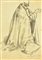 Ignoto FIGURA CON SIGARETTA carboncino su carta, cm 48x34,5 firma, data e...