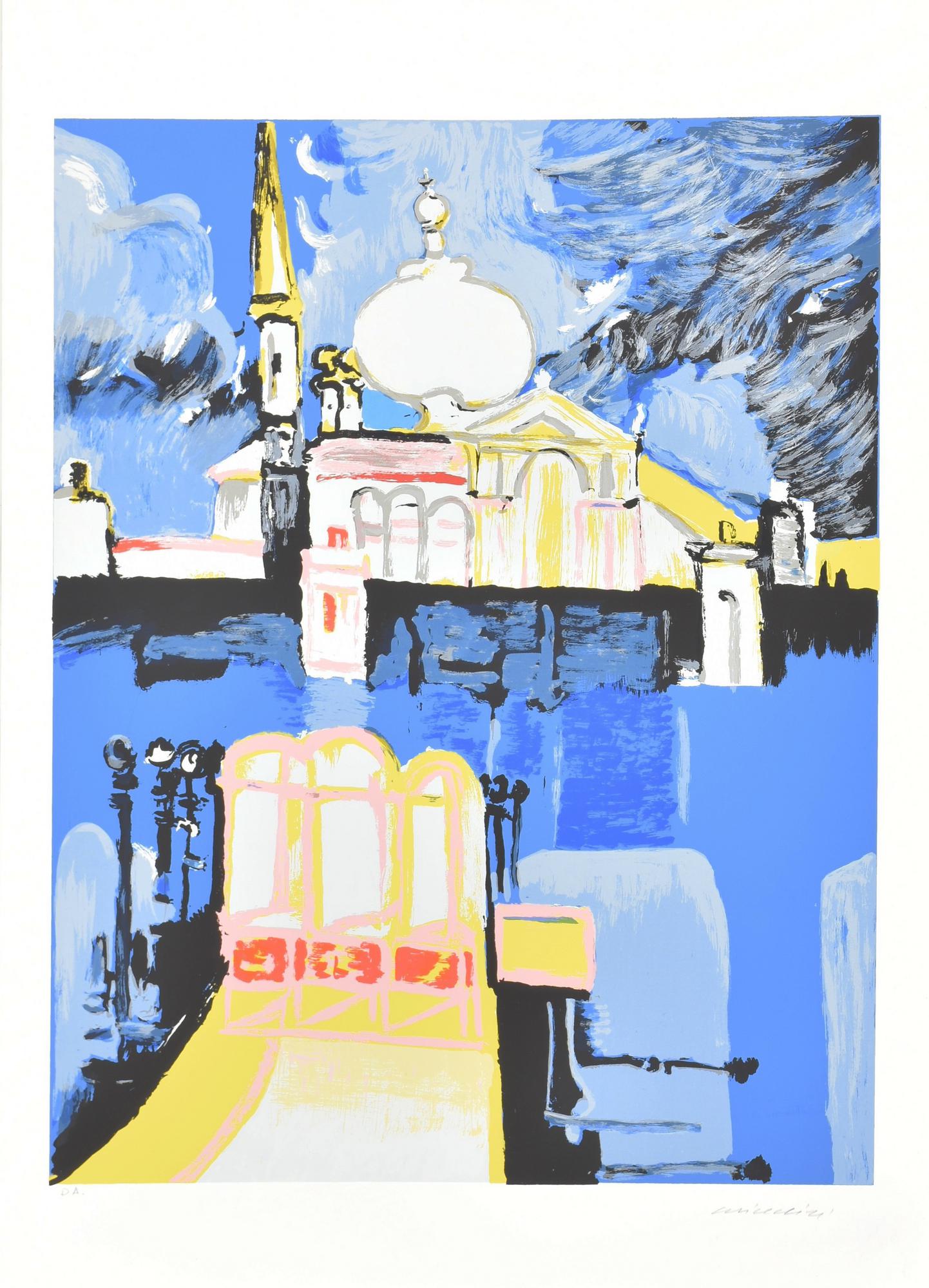 Remo Brindisi ISOLA S. GIORGIO MAGGIORE serigrafia su carta, cm 70x50; es....