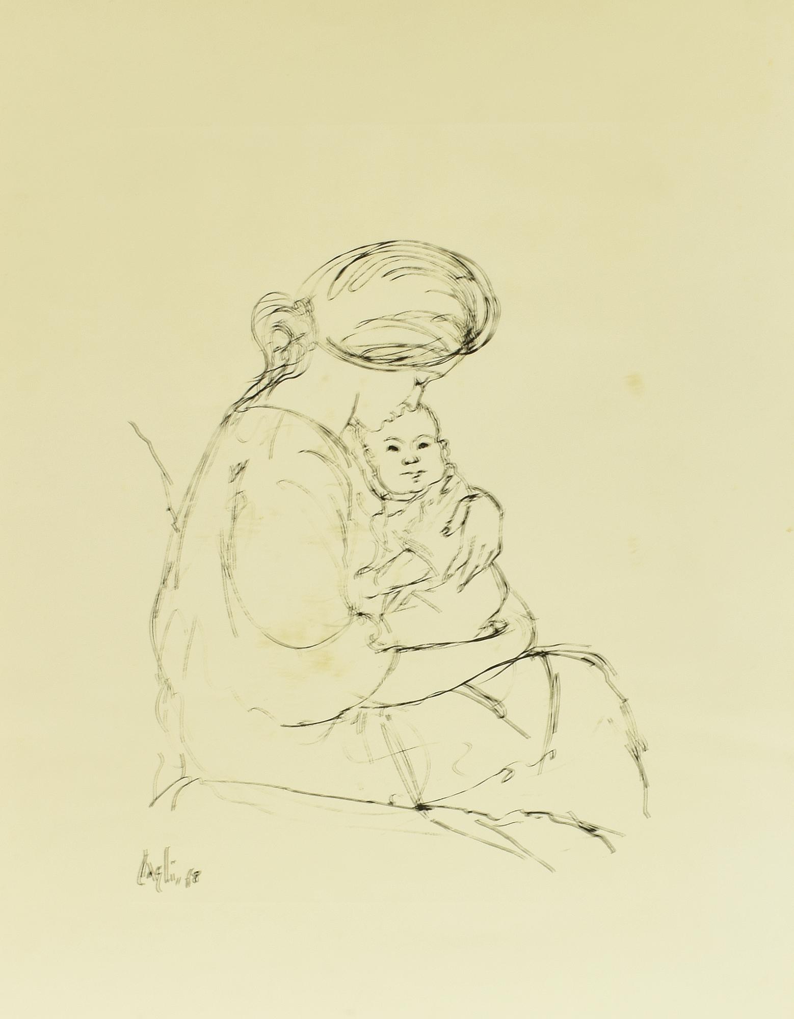 Ignoto MADRE CON BAMBINO stampa su carta cm 65x50 firma in lastra e data...