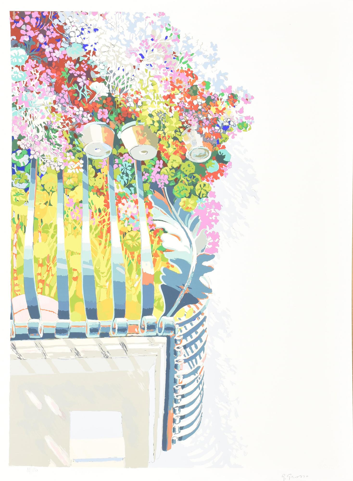 Giuseppe Grosso BALCONE FIORITO serigrafia su carta, cm 70x50; es. 44/150 firma