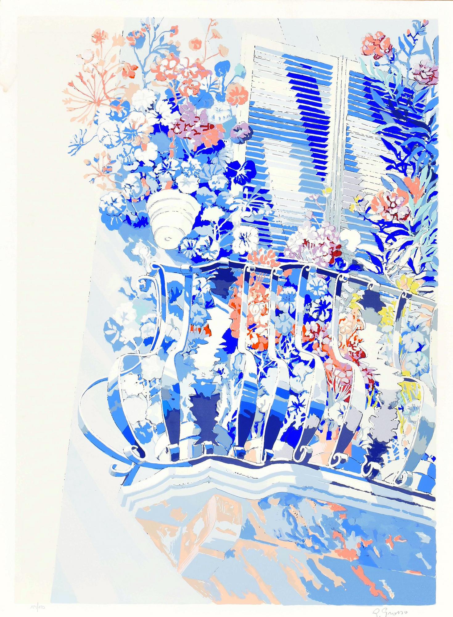Lot 71 | Giuseppe Grosso BALCONE FIORITO serigrafia su carta, cm 70x50; es. 129/150 firma