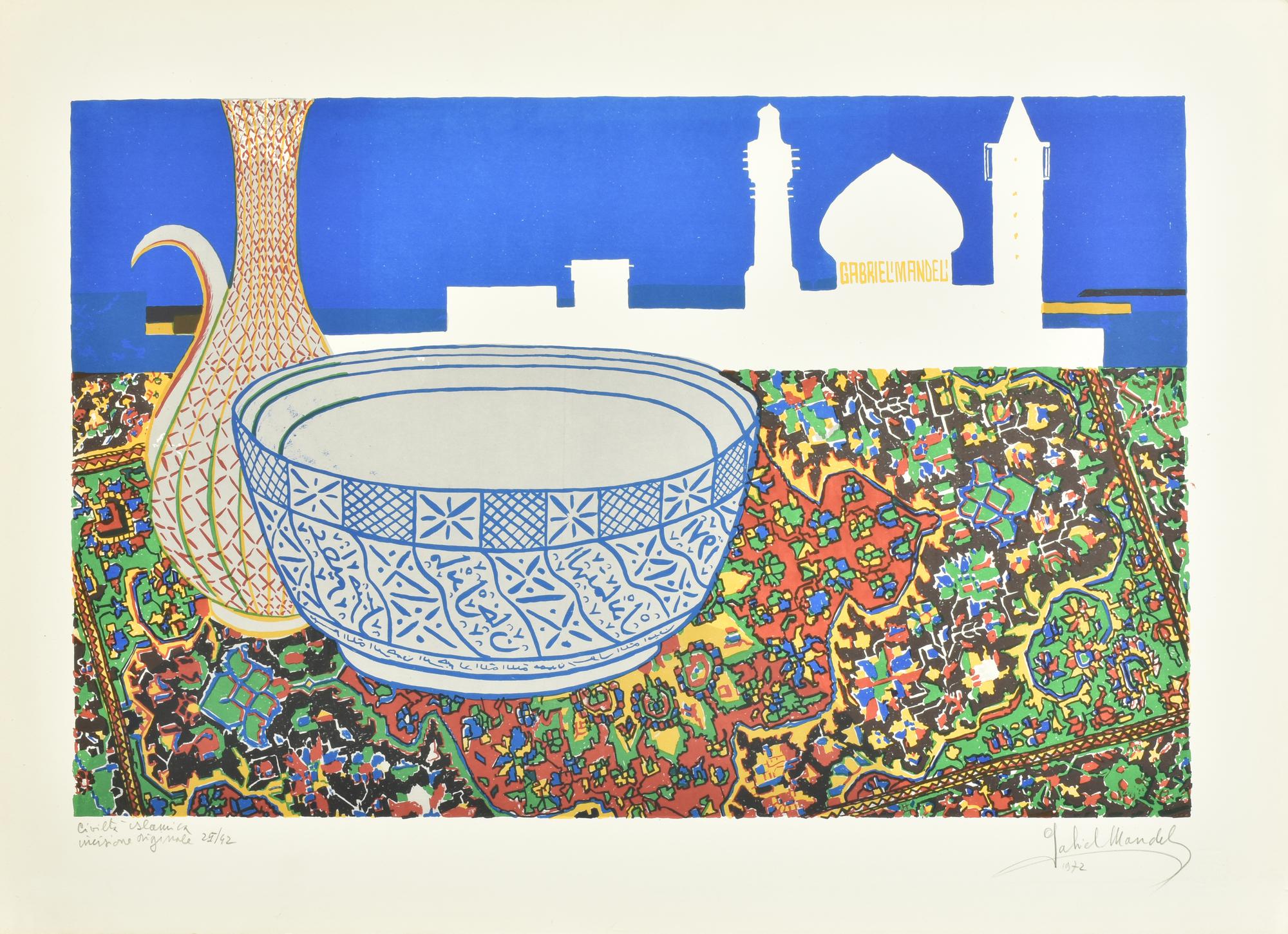Gabriel Mandel CIVILTA' ISLAMICA incisione su carta, battuta cm 38x60, su...