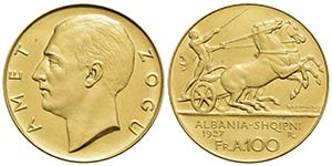 ALBANIA - Zogu I (1925-1939) - 100 Franchi - 1927 - (AU g. 32,2) R Mont. 10 - SPL-FDC