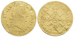 FRANCIA - Luigi XIV (1643-1715) - Mezzo luigi d'oro - 1695 N - (AU g. 3,3) RRR Kr. 301.12 - BB+