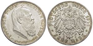 GERMANIA - BAVIERA - Leopoldo Principe reggente (1886-1912) - 5 Marchi - 1911 D - AG R Kr. 518 90° compleanno Eccezionale - FDC