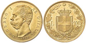 Umberto I (1878-1900). 100 Lire 1888. Au (35mm, 32.26g). Roma. Pagani 570; Gigante 4. qSPL