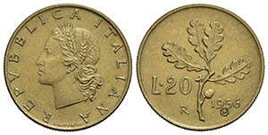 Repubblica Italiana (emissioni in lire) (1946-2001) - 20 Lire - 1956 - Ramo di quercia - Prova - BT RR Mont. 3 - FDC