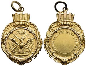 SAVOIA - Umberto I (1878-1900) - Medaglia - Tiro a segno nazionale - Aquila coronata ad ali spiegate verso s. - R/ Nel giro: società tiro a segno nazionale - (AU g. 14,75) RRR mm. 37x31 - SPL