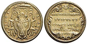 PAPALI - Sede Vacante (1721) - Medaglia - 1721 Ø: 28 mm. - (AE dorato g. 8,75) RRR Boccia 25 Governatore Mons. Ruspoli - qSPL