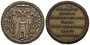 PAPALI - Sede Vacante (1769) - Medaglia - 1769 - Stemma di Monsignor Casali entro cartiglio - R/ Scritta Ø: 29 mm. - (AE g. 9,41) RR Boccia 67; Bart. pag. 188 - SPL