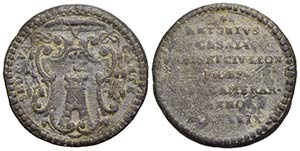 PAPALI - Sede Vacante (1769) - Medaglia - 1769 - Stemma di Monsignor Casali entro cartiglio - R/ Scritta Ø: 29 mm. - (PB g. 12,59) RR Boccia 67; Bart. pag. 188 Ex Negrini 33 del 1/6/2011 - BB