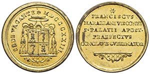 PAPALI - Sede Vacante (1823) - Medaglia - 1823 Opus: Pasinati Ø: 28 mm. - (AE dorato g. 10,2) RR Boccia 82; Bart. p. 242 Monsignor Marazzani Prefetto e Governatore - Questo è il Secondo tipo, definitivo - SPL