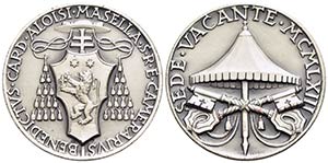 PAPALI - Sede Vacante (1963) - Medaglia - 1963 Opus: Mistruzzi Ø: 38 mm. - (AG g. 27,56) Boccia 124; Bart. p. 394 Cardinale Camerlengo del Conclave Benedetto Aloisi Masella - FDC