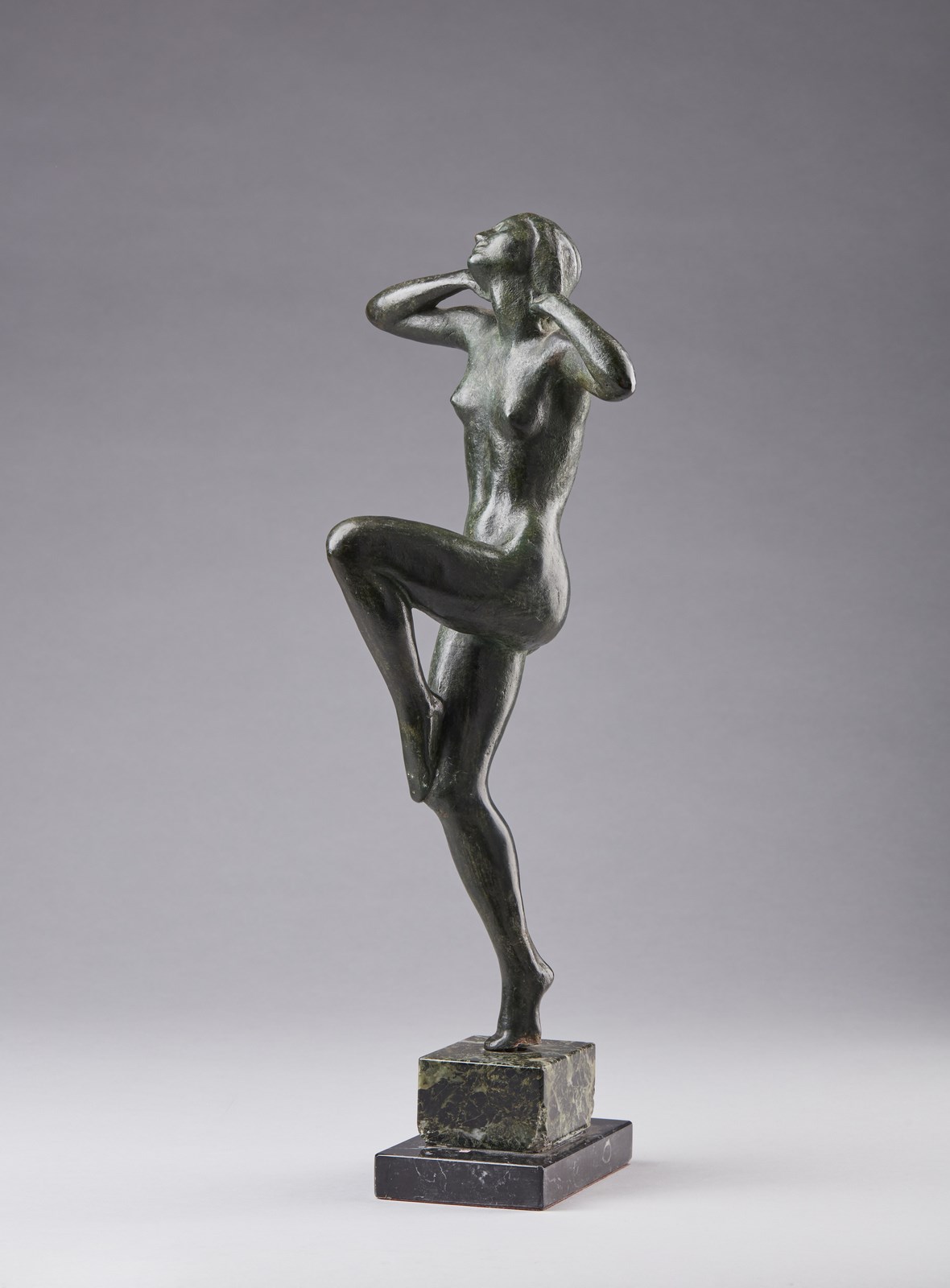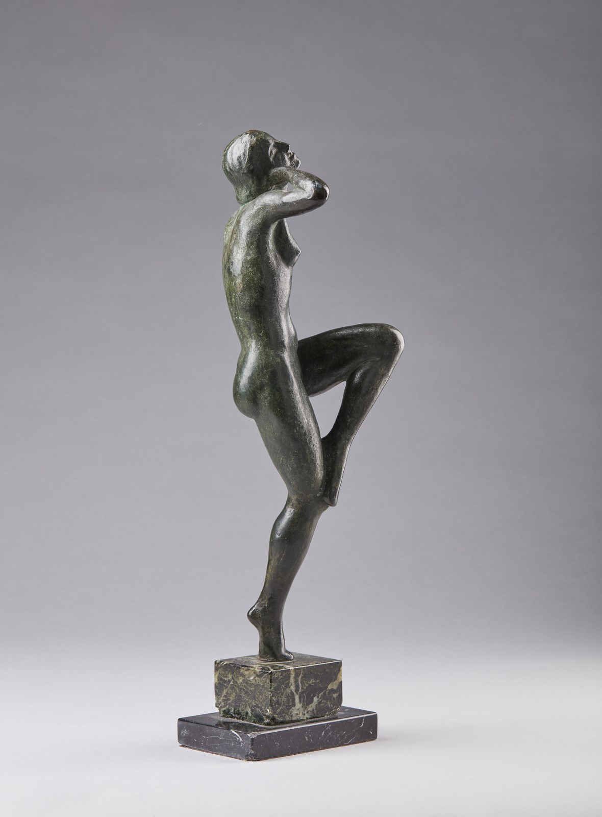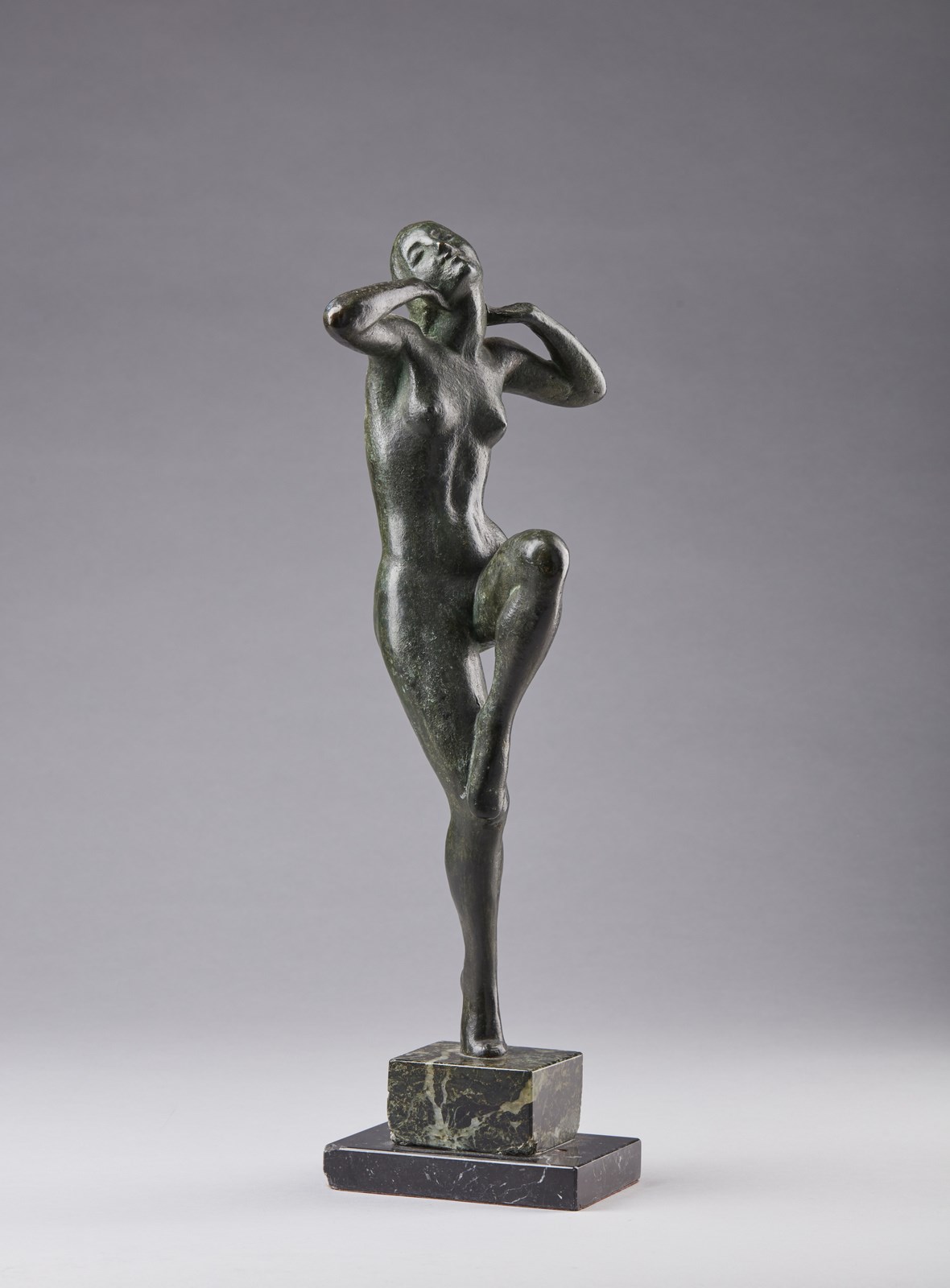 AUTORE NON IDENTIFICATO Figura. bronzo. Cm 12,80 x 47,00 x 8,00. Anni '30. Lievi difetti.