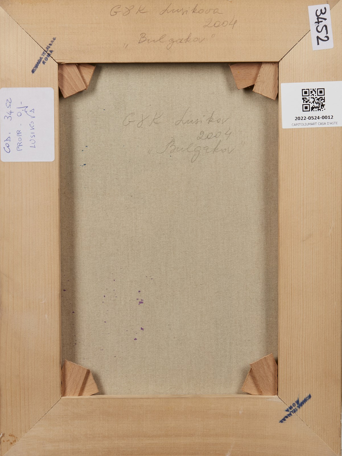 LUSIKOVA GIULIA (n. 1967) Mihail Bulgakov e trasformazione magica. 2004. Olio su tela . Cm 30,00 x 40,00. Al retro firma e anno. Autentica dell'artista su fotografia.