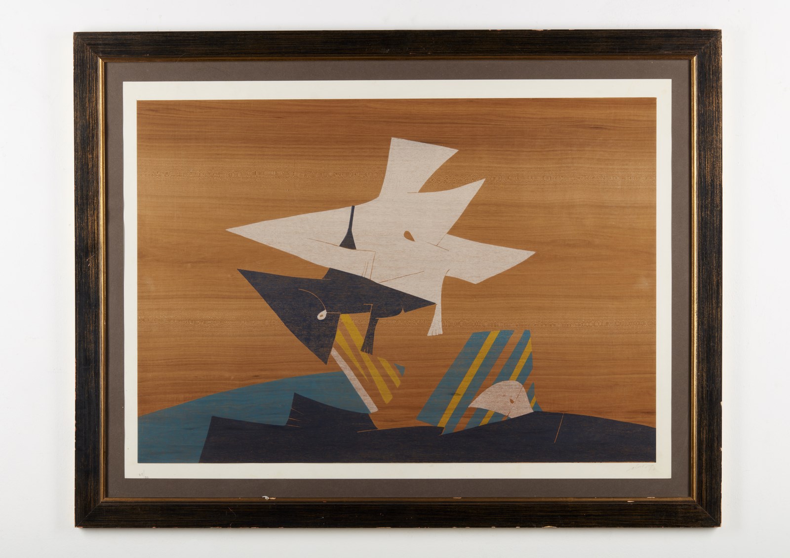 DOVA GIANNI (1925 - 1991) Senza titolo. . Litografia su carta. Cm 80,00 x 60,00. 45/99. Tiratura e firma in basso a matita. Lievi difetti. . Cornice presente