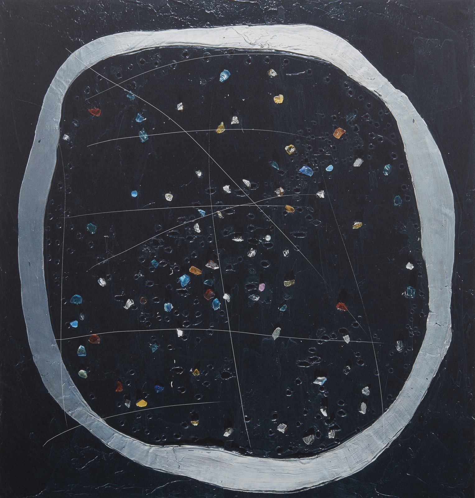 FONTANA LUCIO (1899 - 1960) ( ATT.TO). Concetto spaziale: La luna e Venezia. Fotolitografia su lastra di alluminio. Cm 50,00 x 50,00.