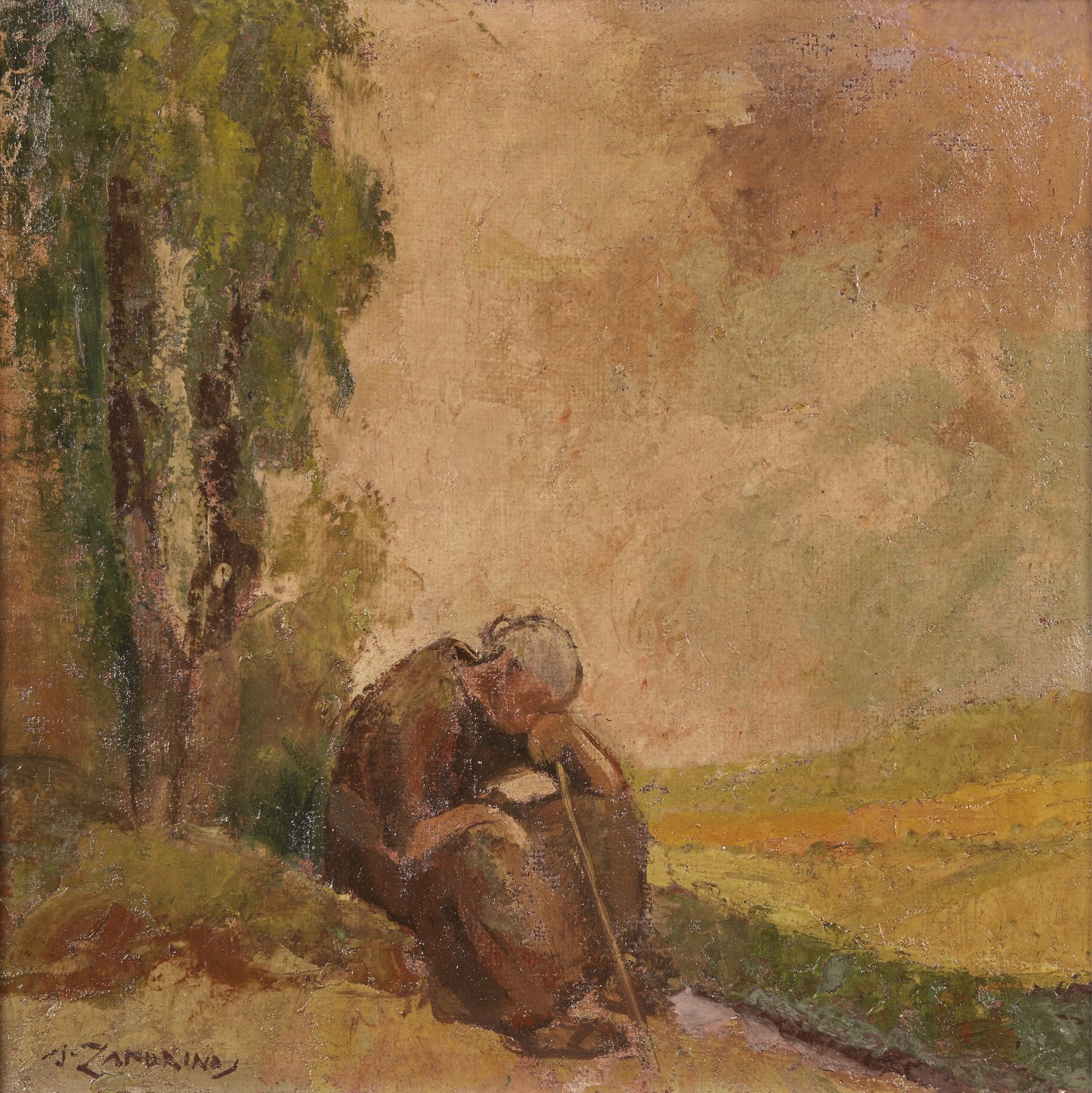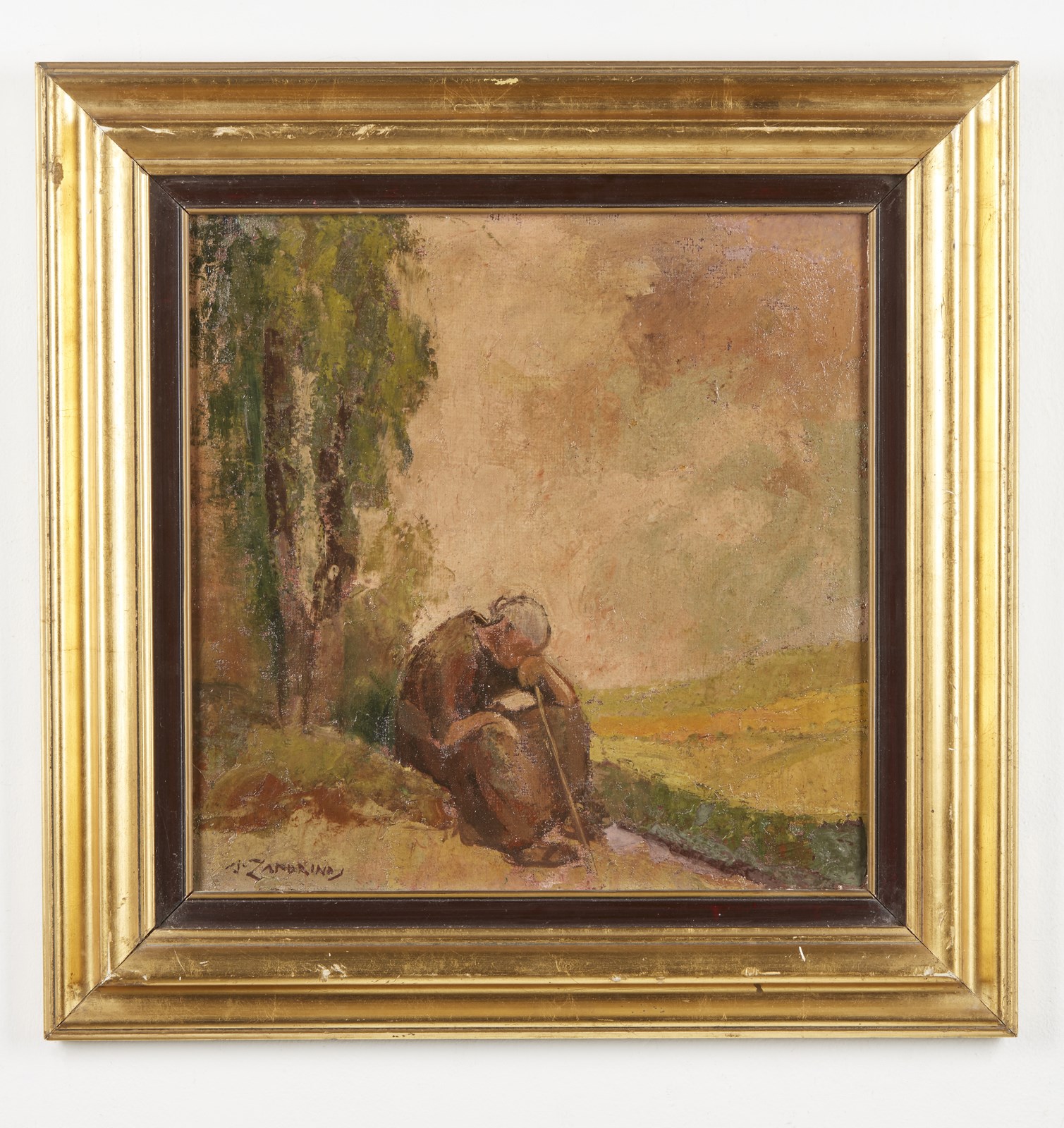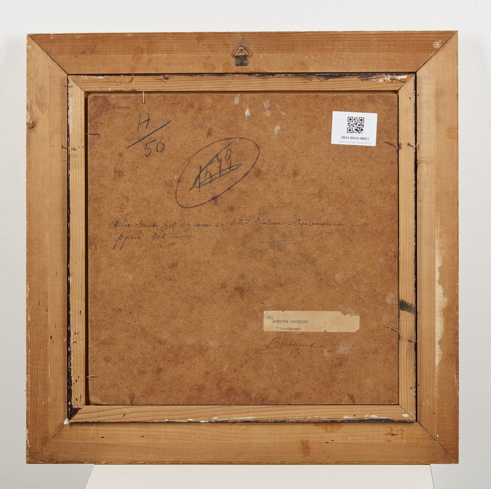 ZANDRINO ADELINA (1893 - 1994) Stanchezza. Olio su tavola. Cm 37,00 x 37,00. Firma in basso a sinistra. Lievi difetti. . Cornice presente