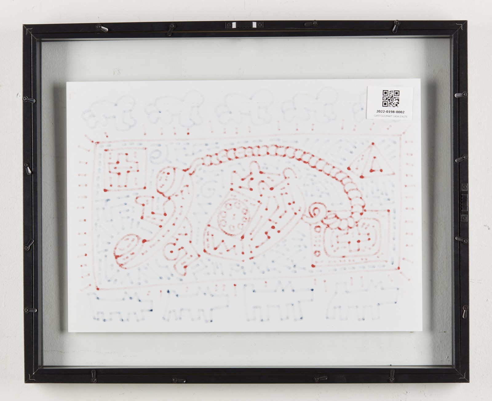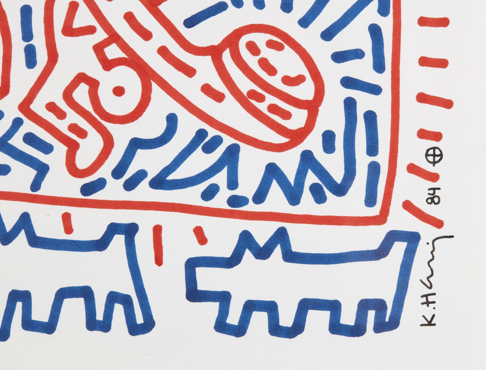 HARING KEITH (1958 - 1990) (ATT.TO). Senza titolo. 1984. Pennarelli su carta. Cm 42,00 x 30,00. Firma e anno in basso a destra. Dichiarazione di autenticità Frank P, Garo, Cooperburg.