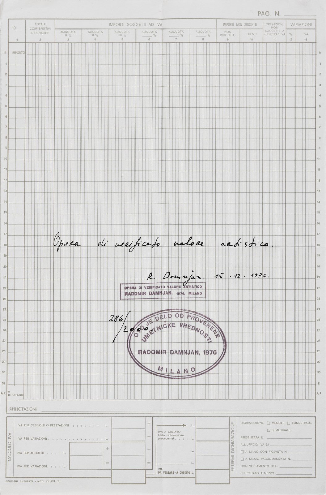 DAMNJAN RADOMIR (n. 1935) Opera di verificato valore artistico. 1976. Tecnica mista su carta. Cm 22,30 x 34,50. Ttitolo, timbro, firma e anno al centro.