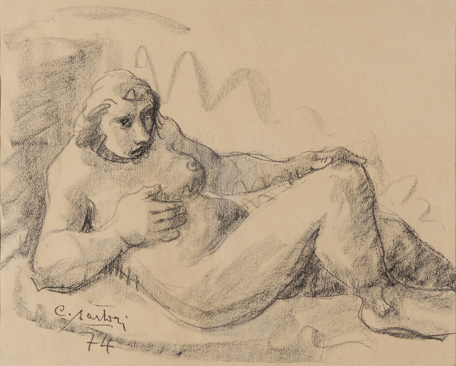 SARTORI CARLO (1921 - 2010) Senza titolo. 1974. Tecnica mista su carta. Cm 50,00 x 40,00. Firma e anno in basso a sinistra. Lievi difetti. . Cornice presente