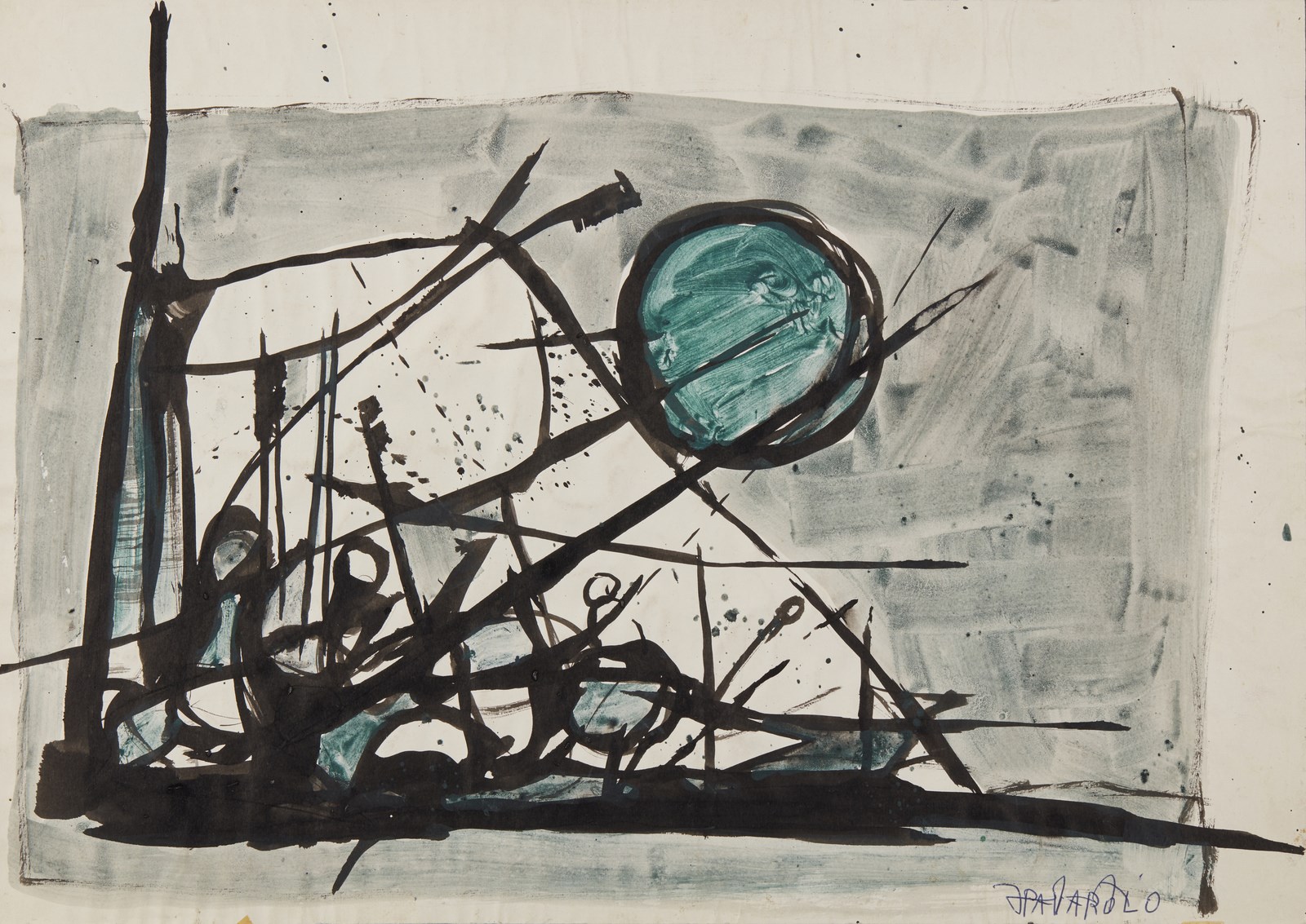 CASORATI FRANCESCO (1934 - 2013) Senza titolo. Tecnica mista su carta. Cm 47,50 x 32,00. Difetti.