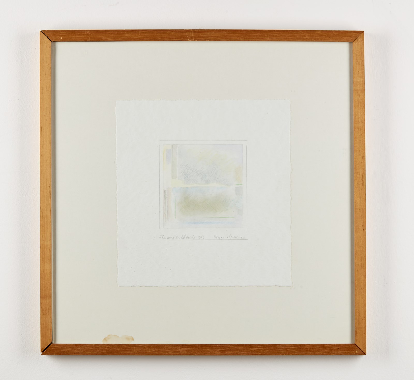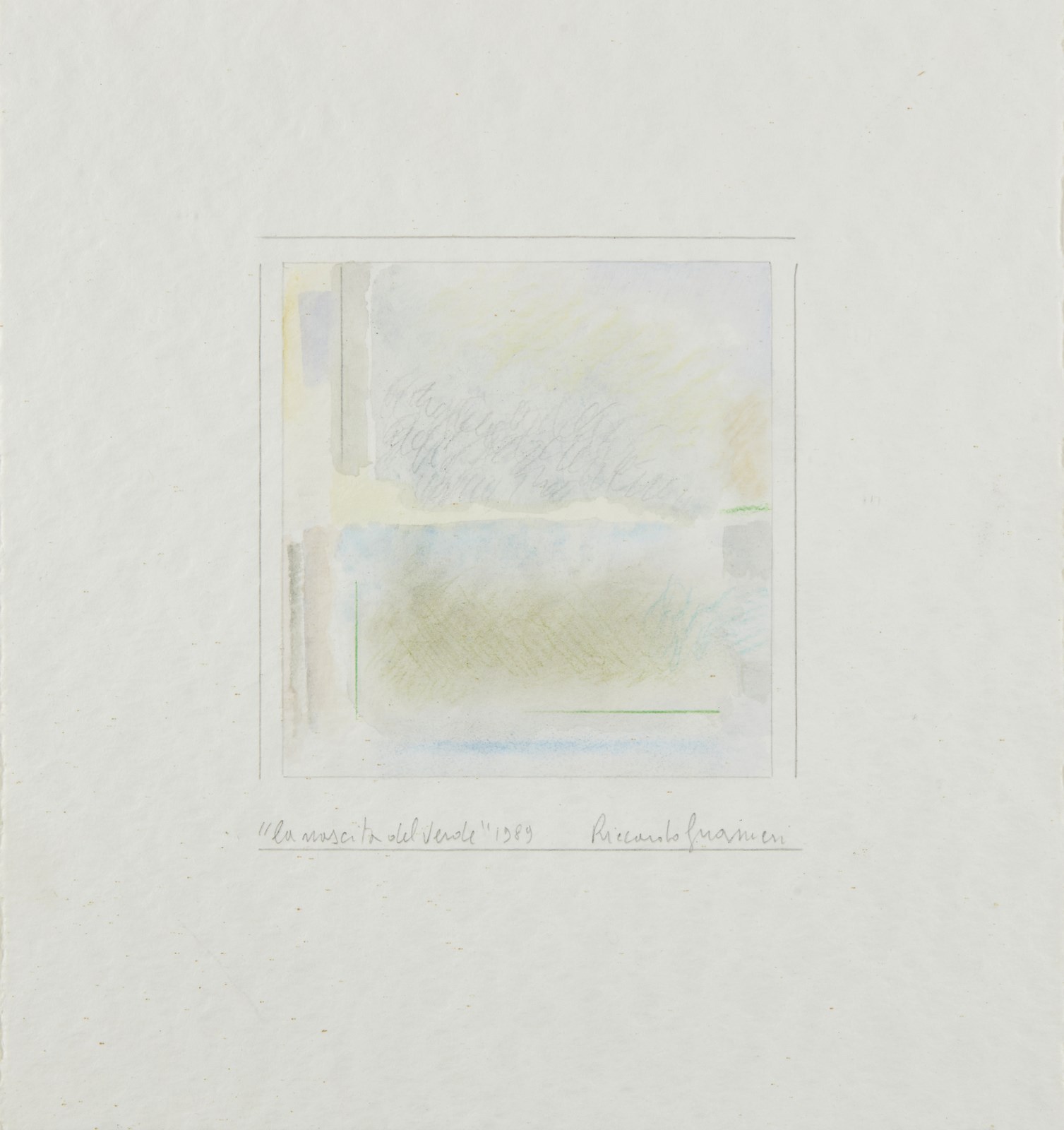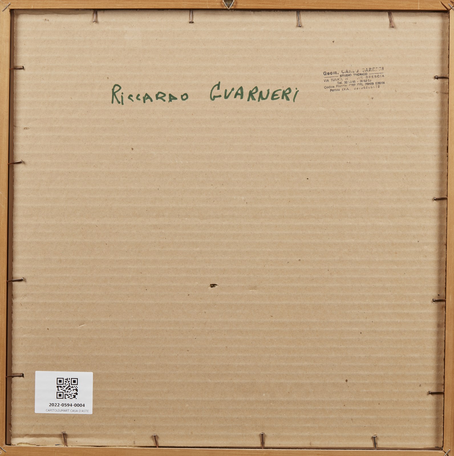 GUARNERI RICCARDO (n. 1933) La nascita del verde. Tecnica mista su cartoncino. Cm 22,00 x 24,00. Firma, anno e titolo in basso a matita. Lievi difetti. . Cornice presente