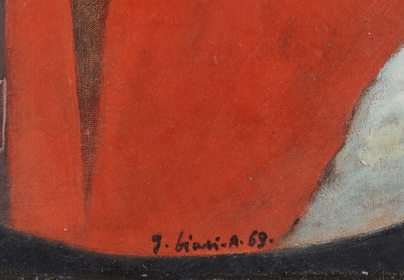 BIASI GUIDO (1933 - 1982) Procès de Paul Veronese XXXIII. 1969. Olio su tela . Cm 60,00 x 73,00. Firma e anno in basso al centro. Al retro firma, anno, titolo e timbro Galleria d'Arte S.Michele, Brescia. Lievi difetti. . Cornice presente