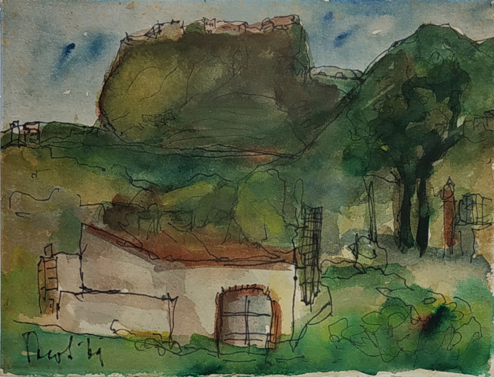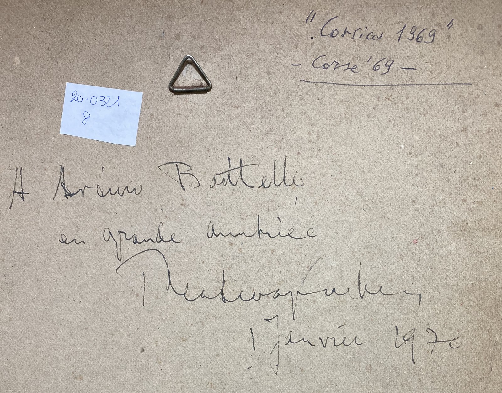 SWAGEMAKERS THEO (1898 - 1994) Corsica. 1969. Gouache su carta. Cm 19,00 x 15,00. Firma in basso a sinistra. Al retro dedica, titolo e anno. Provenienza: Arturo Bottello - Galleria L'Approdo, Torino. Lievi difetti.