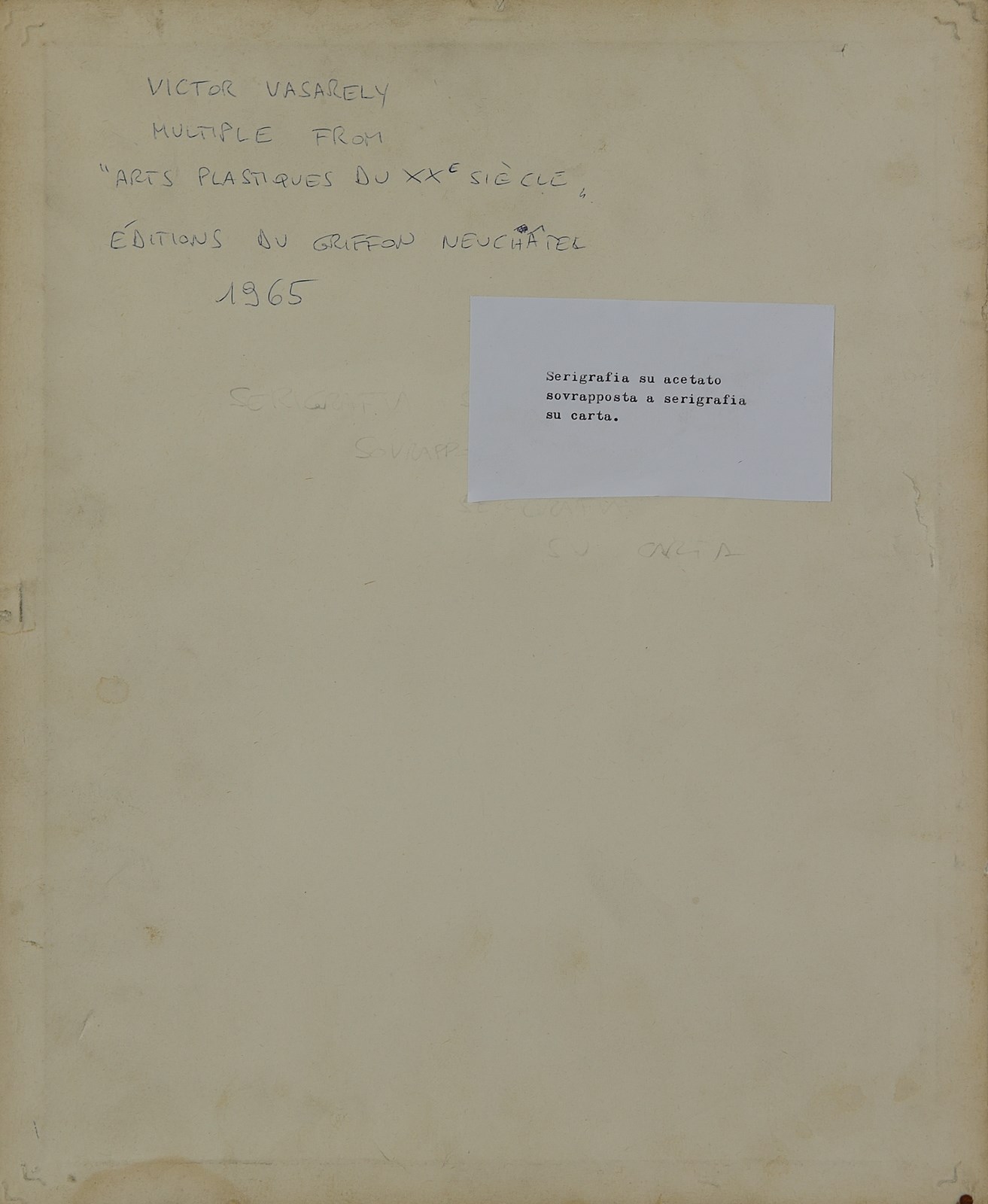 VASARELY VICTOR (1906 - 1997) Senza titolo. 1965. Doppia serigrafia su cartone e acetato. Cm 28,00 x 22,00. Multiplo da Arts Plastiques du XXème siècle. Ed. du Griffon, Neuchàtel (CH). Lievi difetti. Cornice presente