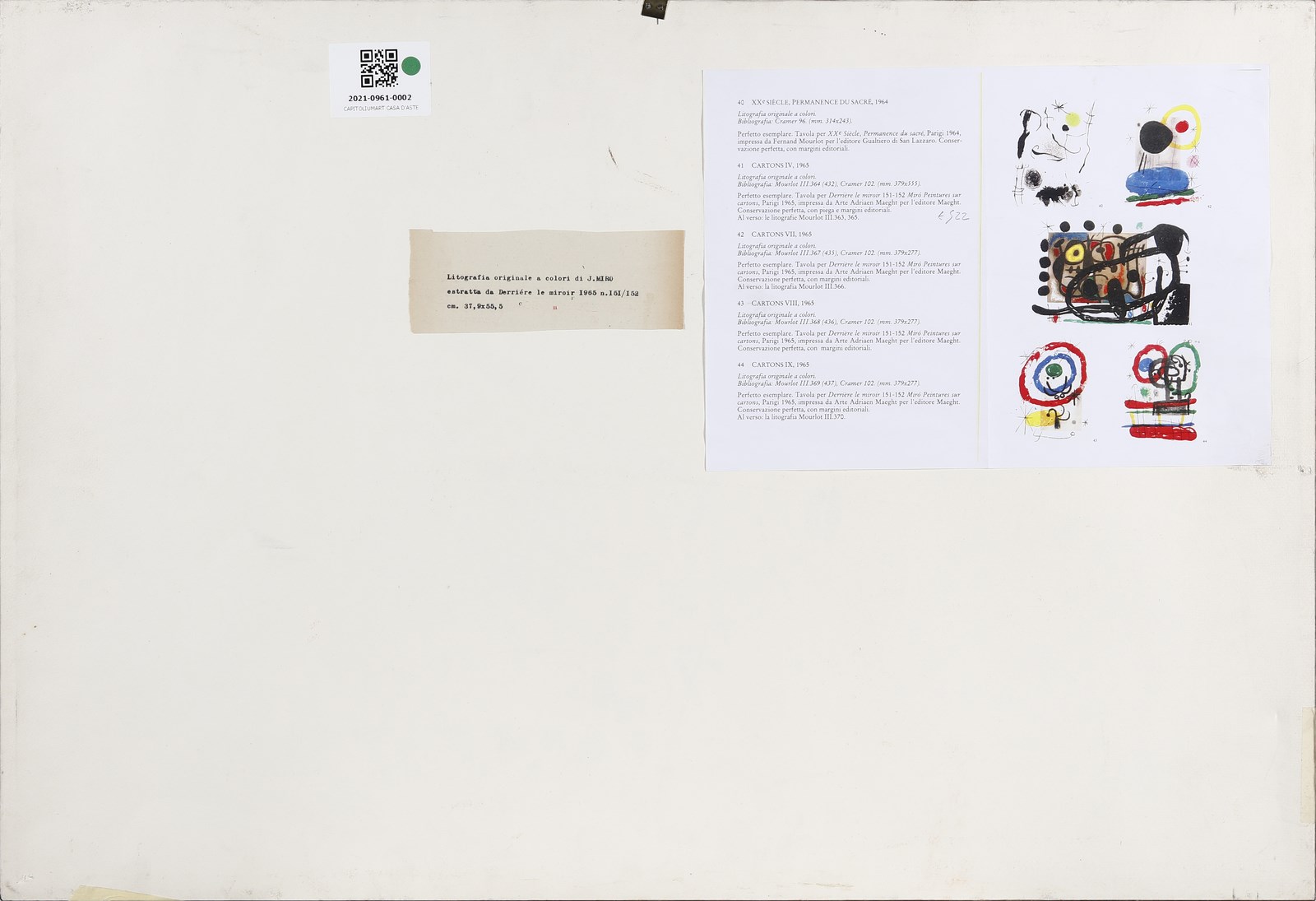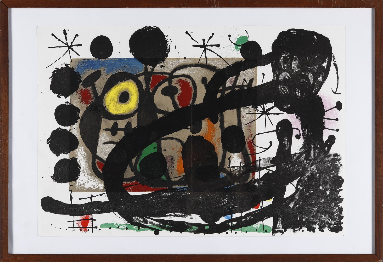 MIRO' JOAN (1893 - 1983) Cartoons. 1965. Fotolitografia. Cm 55,50 x 37,90. Estratta da Derrière le miroir, 1965, n.151-152. Editore: Maeght, Parigi. Stampatore: Mourlot, Parigi. Difetti. . Cornice presente