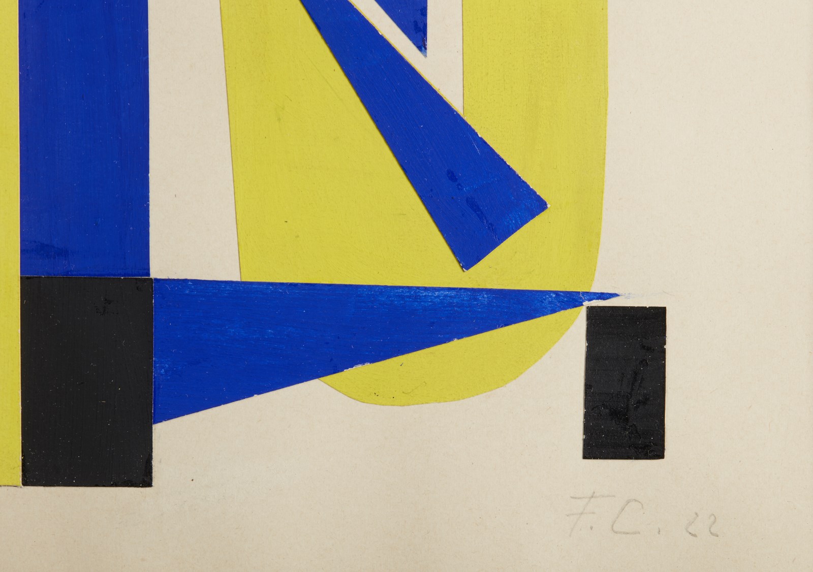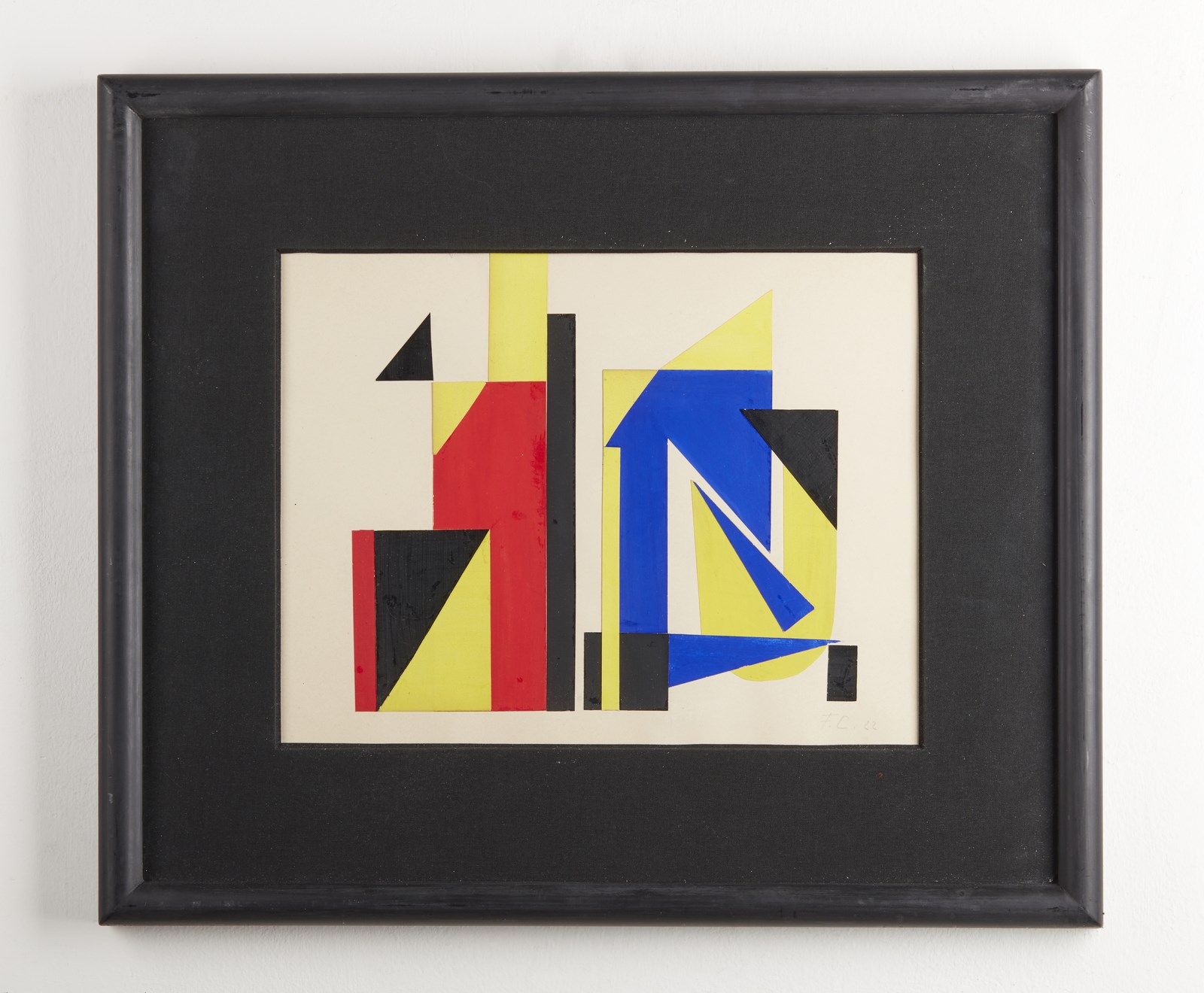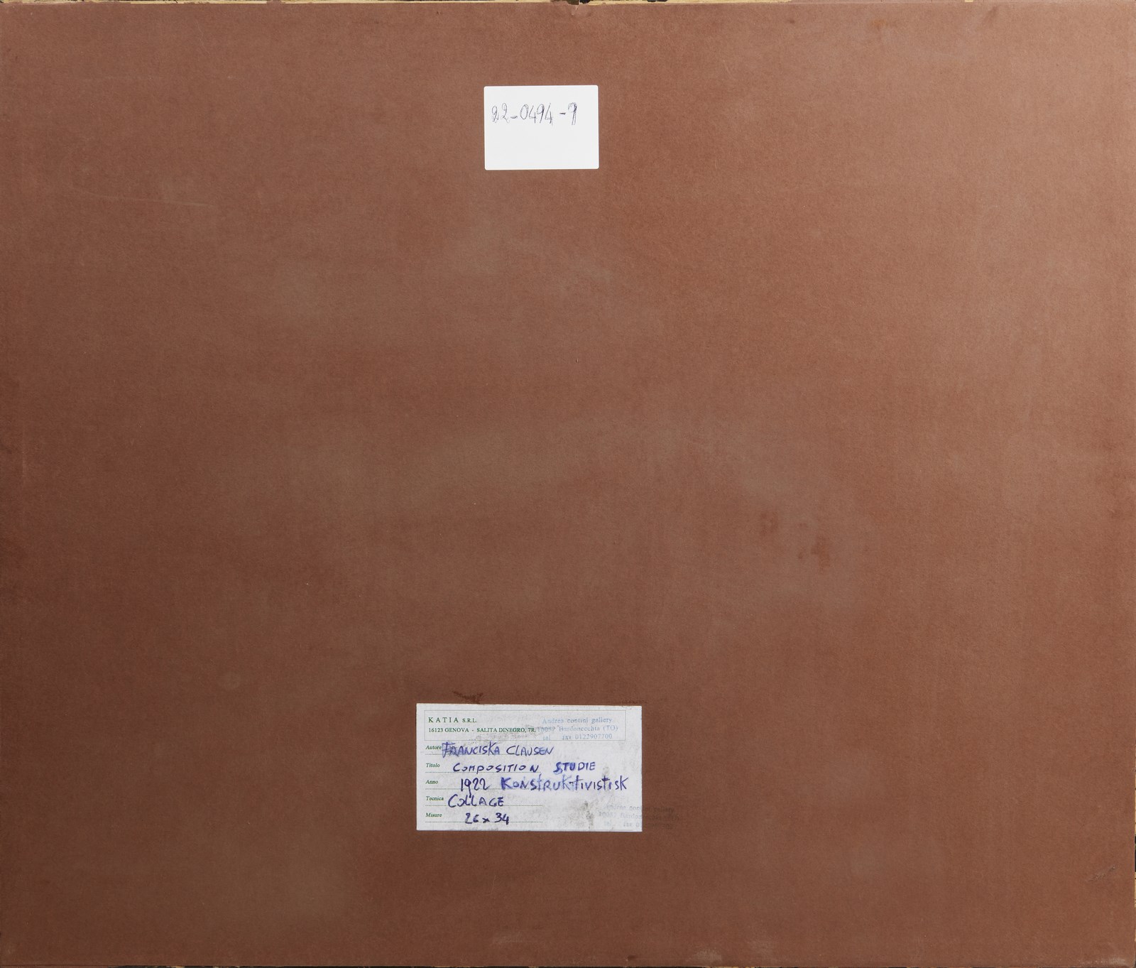CLAUSEN FRANCISKA (1899 - 1986) Composition Studie. . 1922. Collage su carta. Cm 34,00 x 26,00. Firma e anno in basso a destra. Al retro cartiglio descrittivo Katia S.R.L, Genova e timbro Galleria d'arte Andrea Contini, Torino. Lievi difetti. . Cornice presente