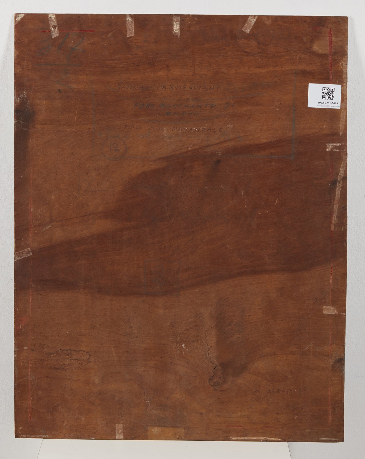 PARMEGGIANI SANDRO (1910 - 2003) Senza titolo. Olio su tavola. Cm 54,00 x 69,50. Firma in basso a destra. Difetti.