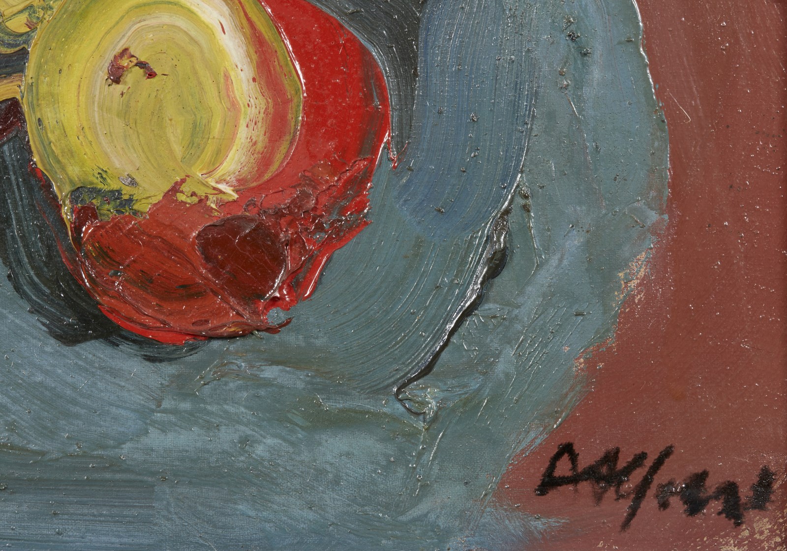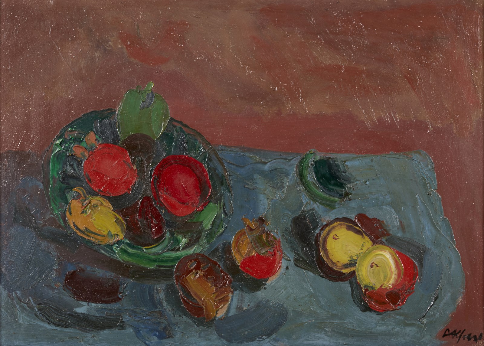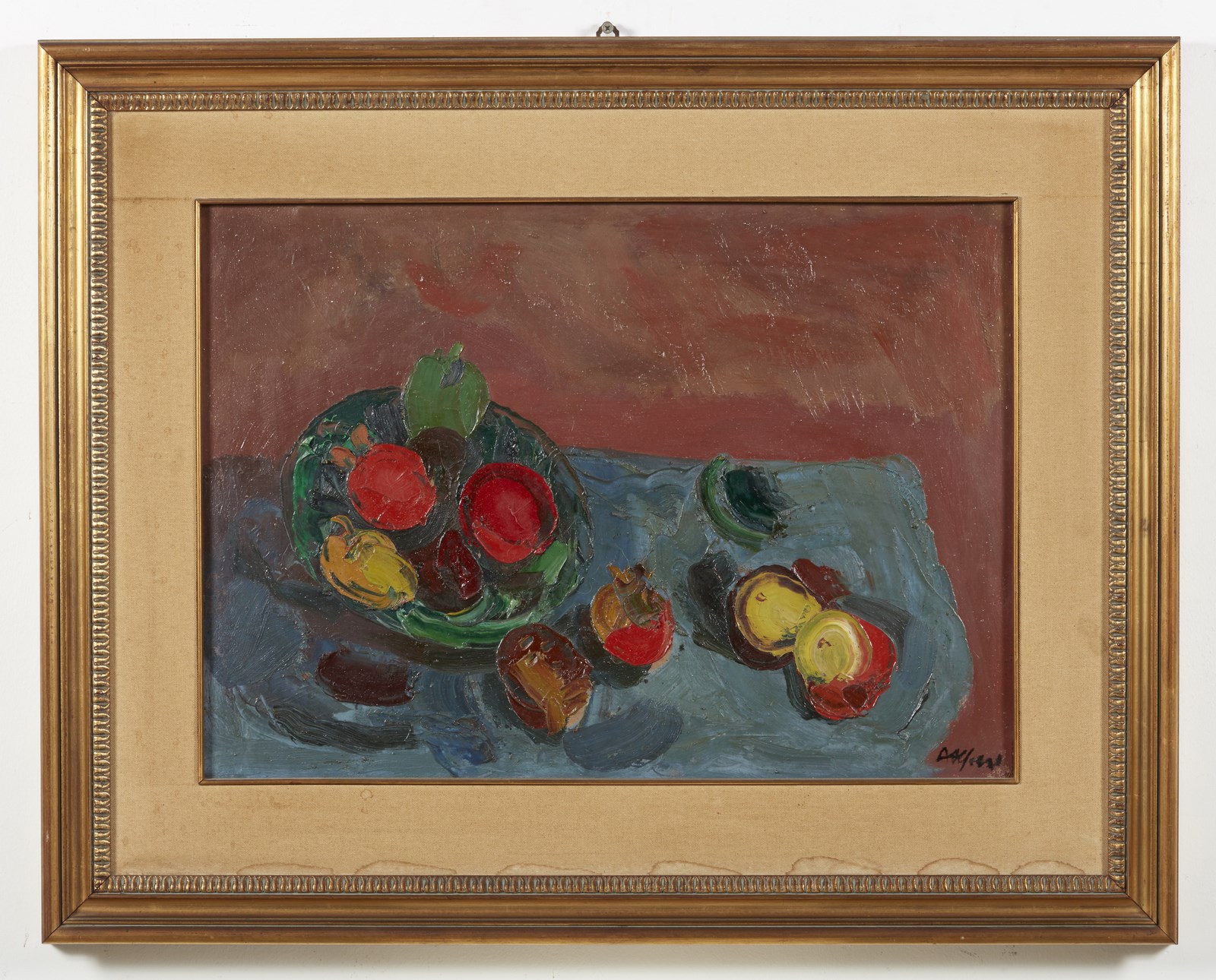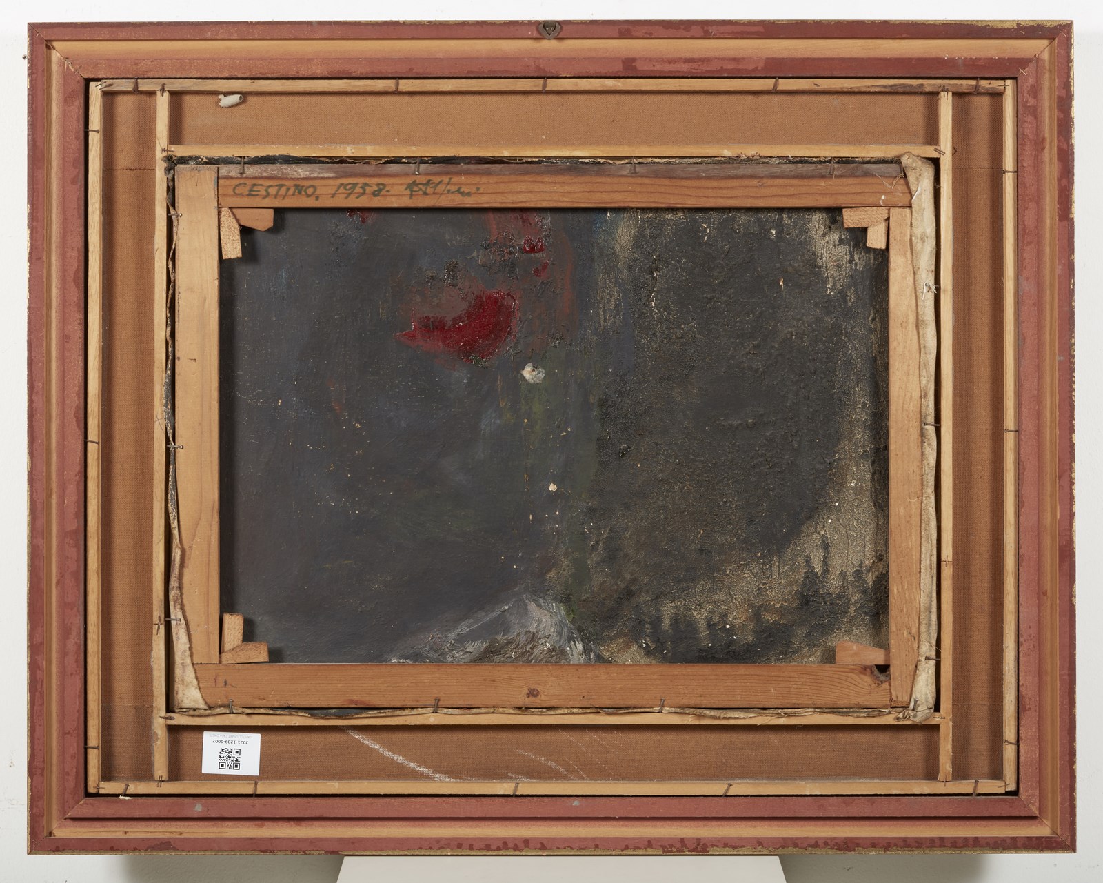 ALFIERI ATTILIO (1904 - 1992) Cestino. 1958. Olio su tela . Cm 70,00 x 50,00. Firma in basso a destra. Al retro titolo e anno. Opera registrata presso l'Archivio Attilio Alfieri. Pubblicazione: Catalogo ragionato Attilio Alfieri, n.159, p.299. Cornice presente