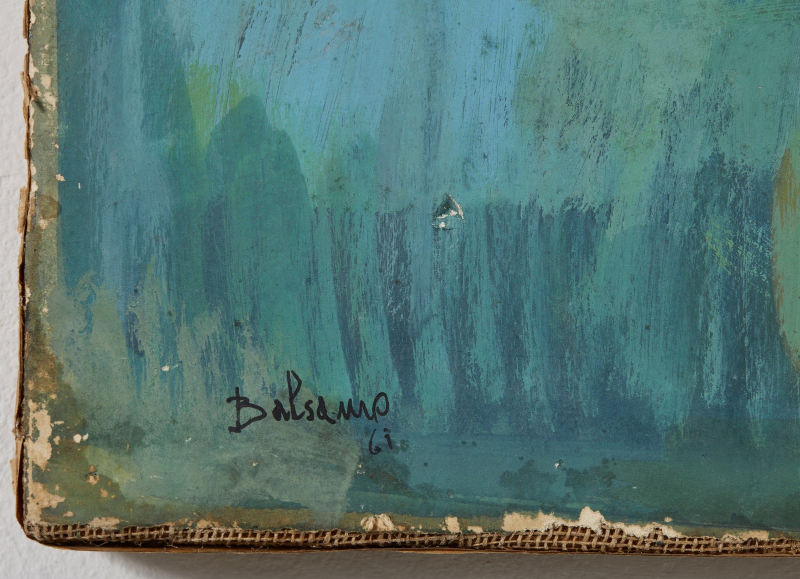BALSAMO VINCENZO (1935 - 2017) Senza titolo. 1961. Tecnica mista su carta intelata. Cm 59,50 x 50,50. Firma in basso a sinistra. Autentica dell'artista su fotografia riportante il relativo numero d'inventario. Cornice presente