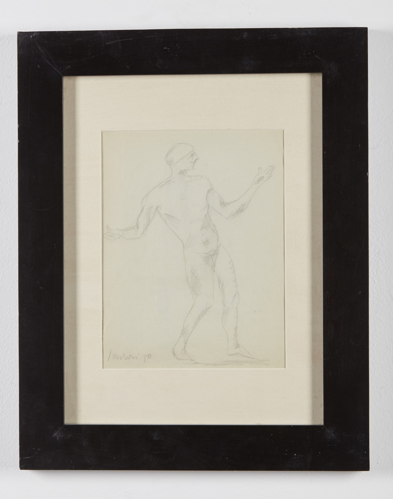 SARTORI AMLETO (1915 - 1962) Maschera (personaggio in posa per una scenografia teatrale). . 1950. Disegno su carta. Cm 19,00 x 26,00. Firma e anno in basso a sinistra. . Cornice presente