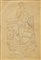 SARTORI AMLETO (1915 - 1962) Uomo che rema. 1952. Disegno su carta. Cm 21,50 x 31,00. Firma e anno in basso a destra. Disegno preparatorio per la realizzazione di un instarsio su legno. . Cornice presente