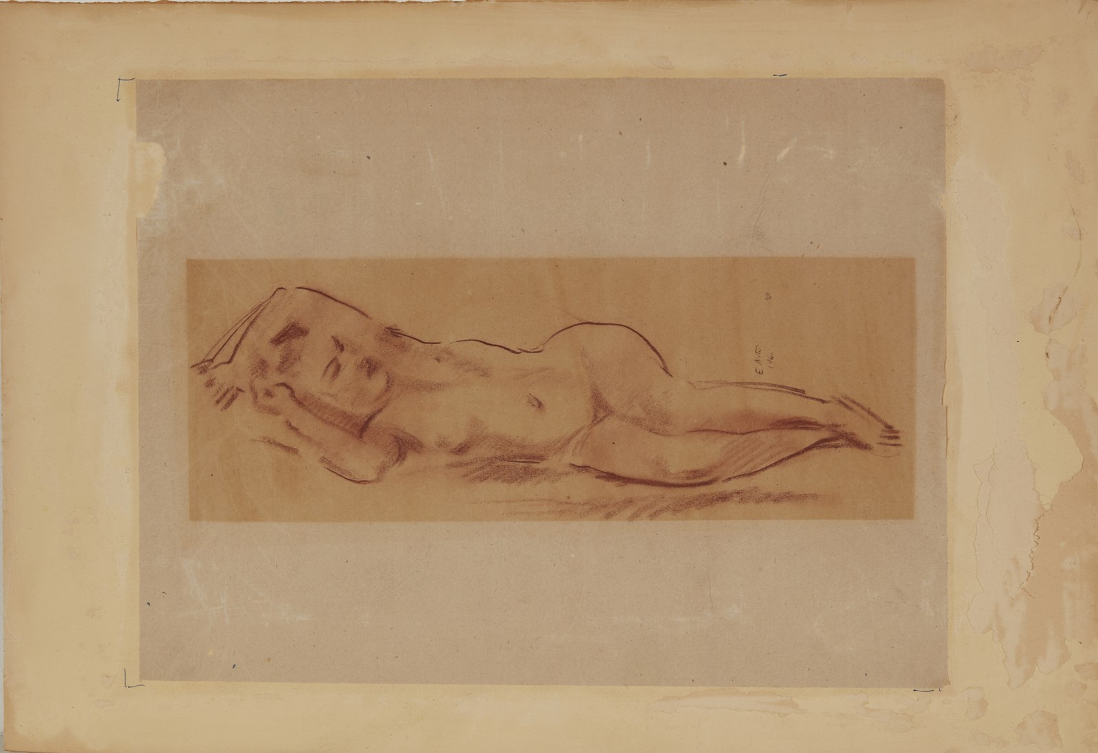 NOTTE EMILIO (1891 - 1982) Senza titolo. Sanguigna su carta . Cm 37,50 x 49,50. Firma e anno in basso a destra. Anni '40. Difetti.