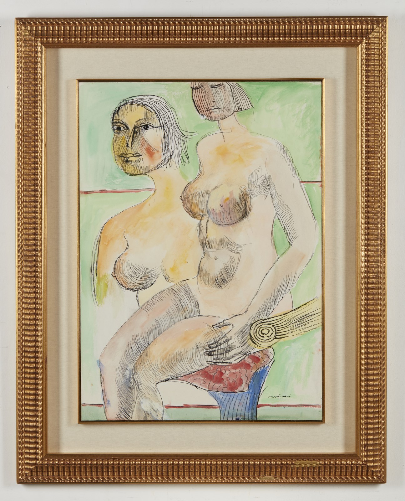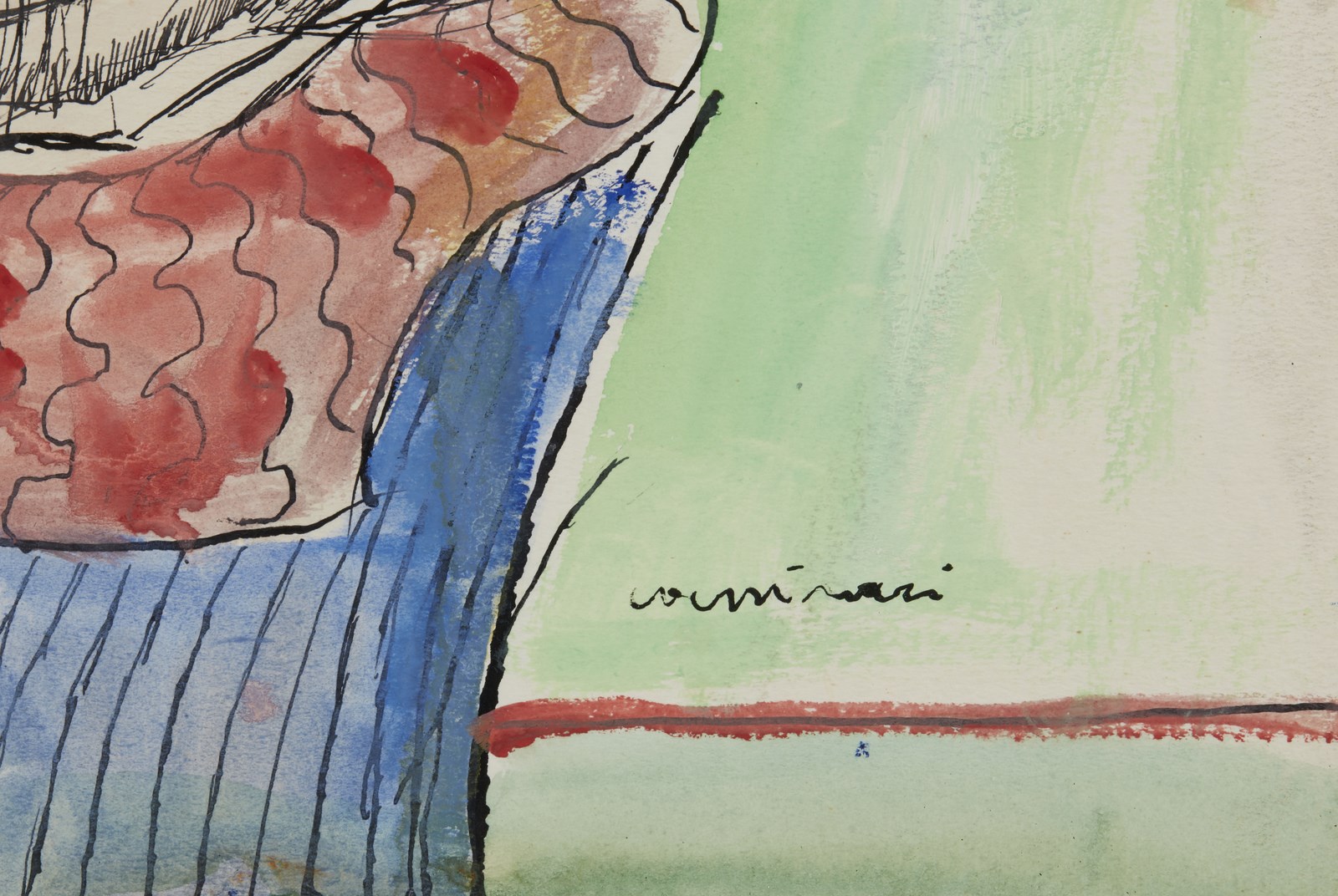 CASSINARI BRUNO (1912 - 1992) Senza titolo. 1990. Tempera su carta applicata su tela. Cm 50,00 x 70,00. Firma in basso a destra. Autentica dell'artista su fotografia riportante il relativo numero d'inventario. Lievi difetti.