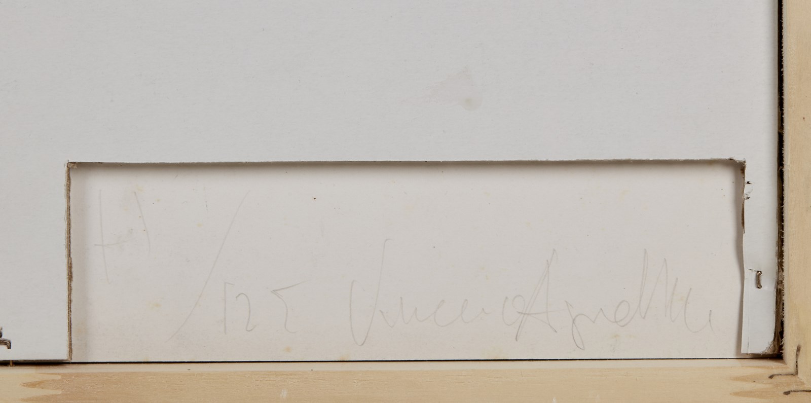 AGNETTI VINCENZO (1926 - 1981) Senza titolo. 1971. Litografia. Cm 50,00 x 70,00. H/125.Tiratura e firma al retro a matita. Edizione totale: 125 esemplari + alcune prove dalla A alla H. Edizioni Artestudio, Macerata.Lievi difetti. . Cornice presente