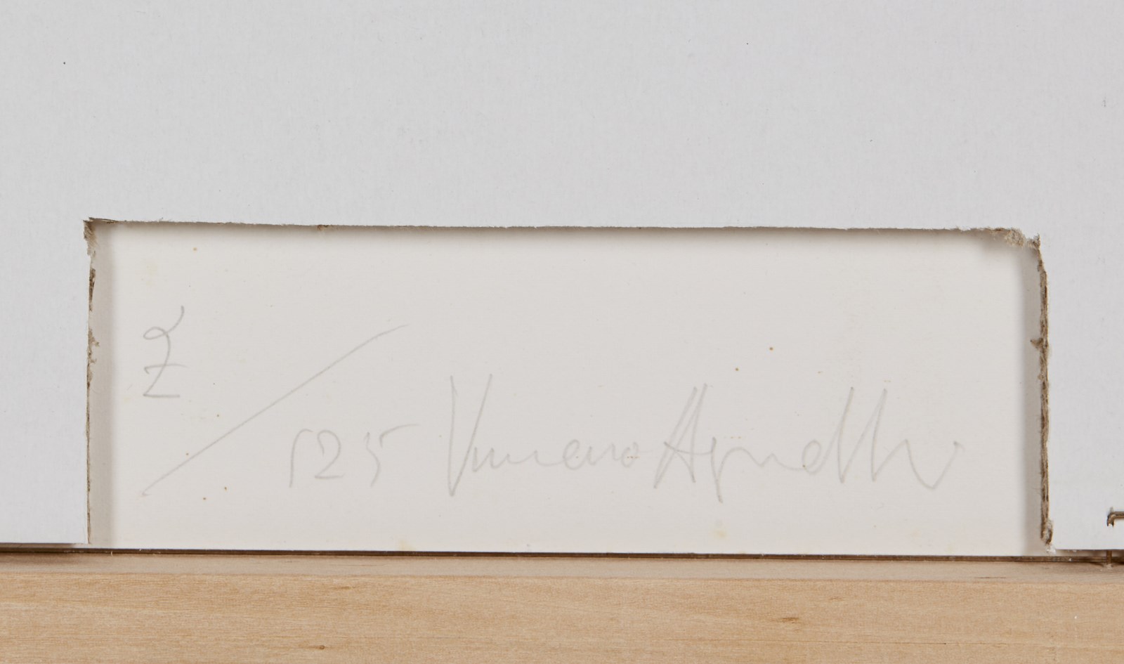 AGNETTI VINCENZO (1926 - 1981) Writing cancelled by the form and betrayed by the subject. . 1971. Litografia. Cm 50,00 x 70,00. 2/125. Tiratura e firma al retro a matita. Edizione totale: 125 esemplari + alcune prove dalla A alla H. Edizioni Artestudio, Macerata. Lievi difetti.