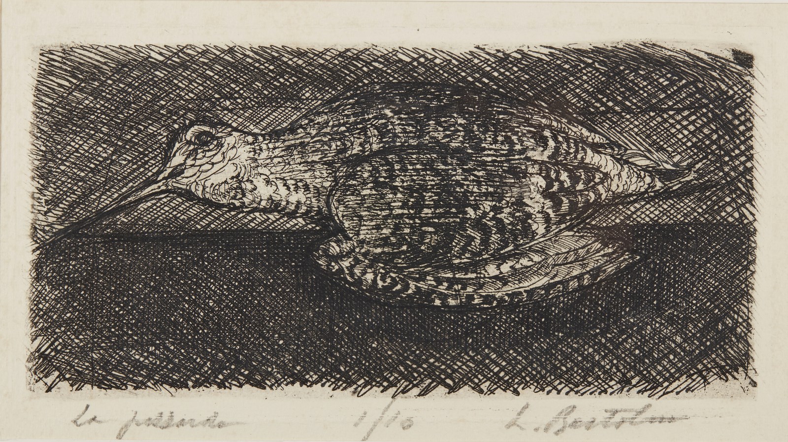 BARTOLINI LUIGI (1892 - 1963) La gazzada. 1940. Acquaforte. Cm 25,50 x 24,50. 1/10. Tiratura, firma e titolo in basso a matita. Dimensione lastra: 11,5x22cm. Si ringrazia l'Archivio Luigi Bartolini per aver confermato l'autenticità dell'opera. Lievi difetti.