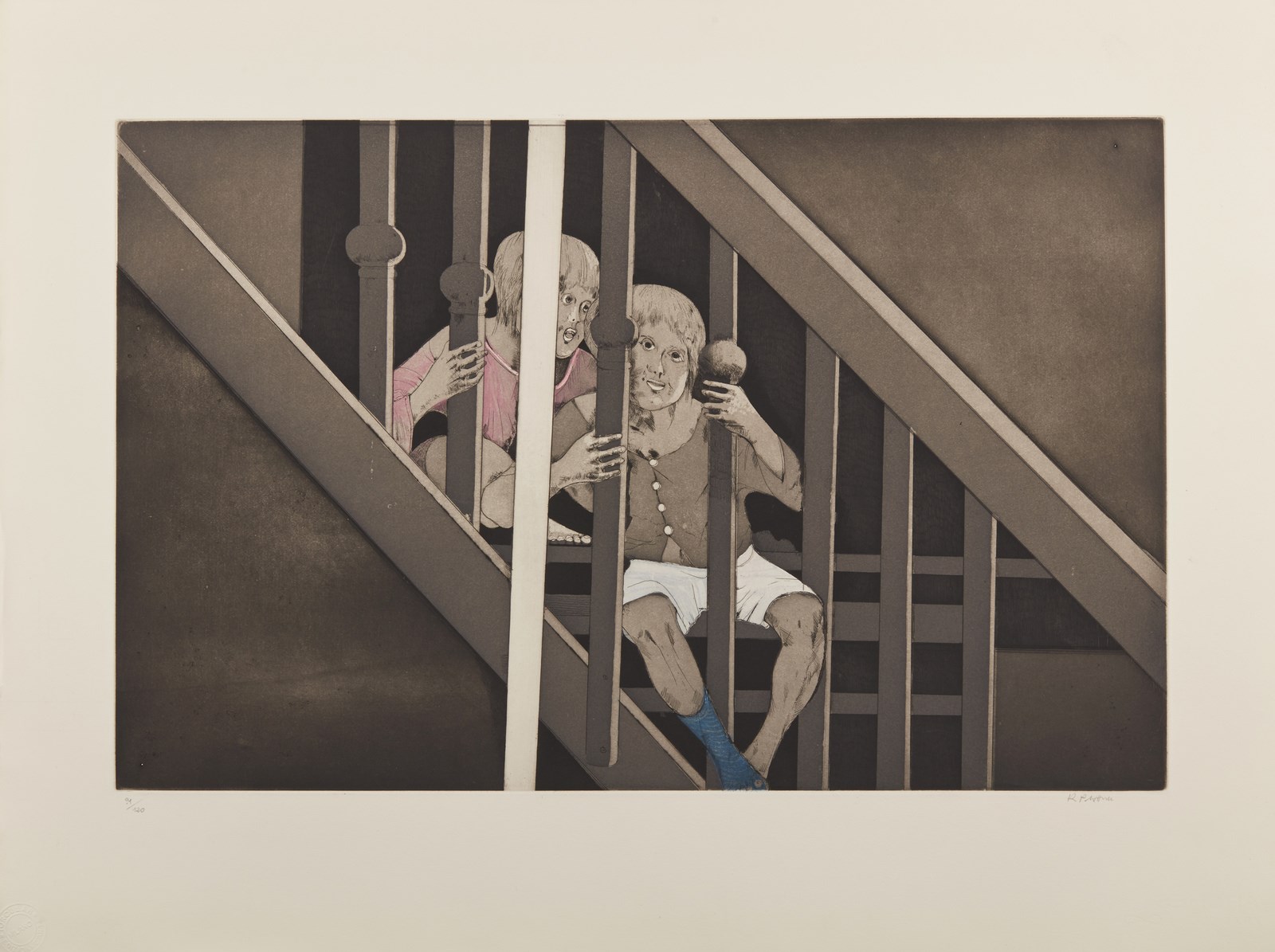 PLATTNER KARL (1919 - 1986) Diego e Carlotta. . Acquaforte e acquatinta. Cm 76,00 x 57,00. 91/120. Tiratura e firma in basso a matita. Dimensioni lastra: 39,5x61,5 cm. Timbro a seccoTorcular Edizioni d'Arte, Milano in basso a sinistra. Lievi difetti.