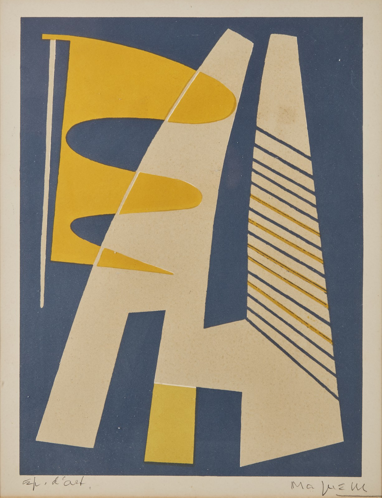 MAGNELLI ALBERTO (1888 - 1971) Senza titolo. . Litografia. Cm 32,50 x 44,70. P.d.a. Tiratura e firma in basso a matita. Filigrana BFK Rivers in basso a destra. Pubblicazione: Magnelli L’Oeuvre Gravè, Bibliothèque Nationale, Parigi 1980, n°21 . Anni'50. Lievi difetti. Cornice presente