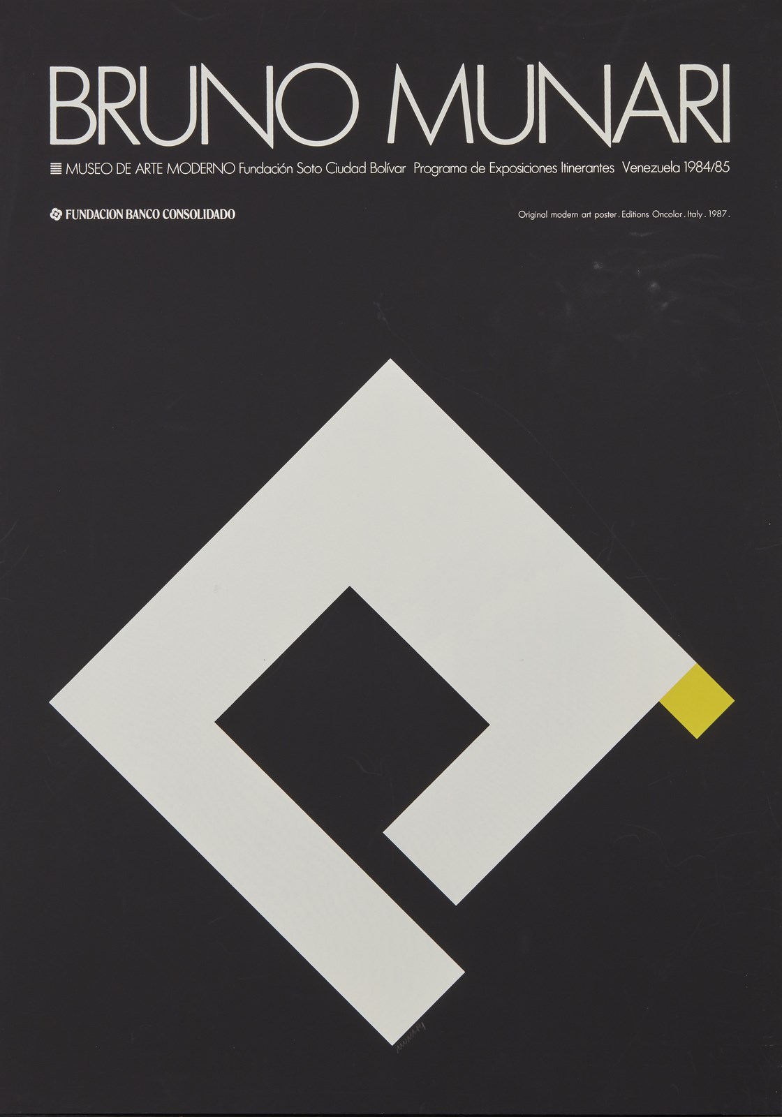 MUNARI BRUNO (1907 - 1998) Senza titolo. . Poster. Cm 49,50 x 69,50. Firma a matita in basso al centro. Poster dell'esposizione tenutasi presso il Museo de Arte Moderno Jesús Soto de Ciudad Bolívar, Venezuela. Anno: 1984/1985. Lievi difetti.