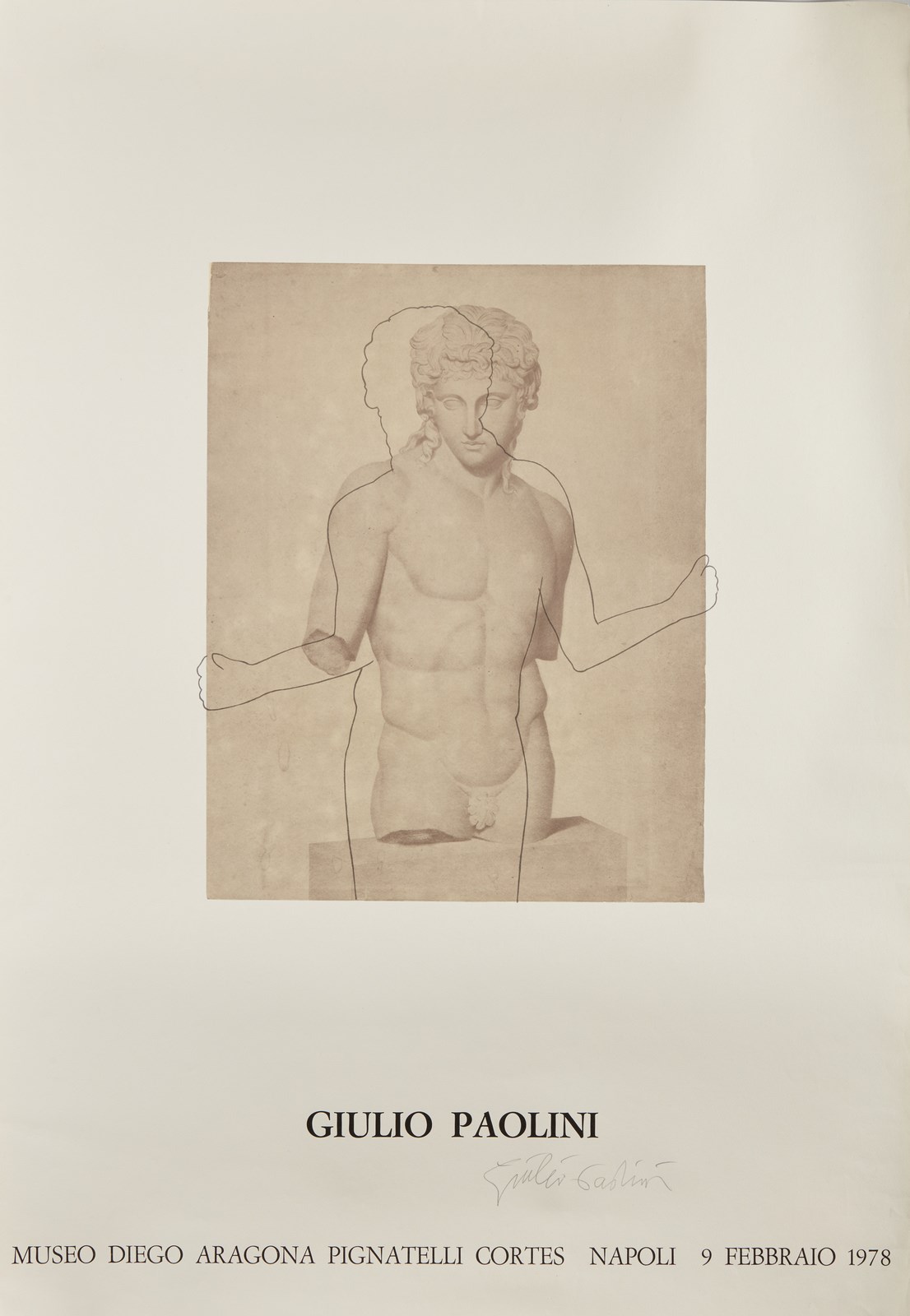PAOLINI GIULIO (n. 1940) Giulio Paolini. 1978. Poster. Cm 69,00 x 99,00. Firma a matita in basso al centro. Poster illustrato con la riproduzione fotografica a colori di un’opera